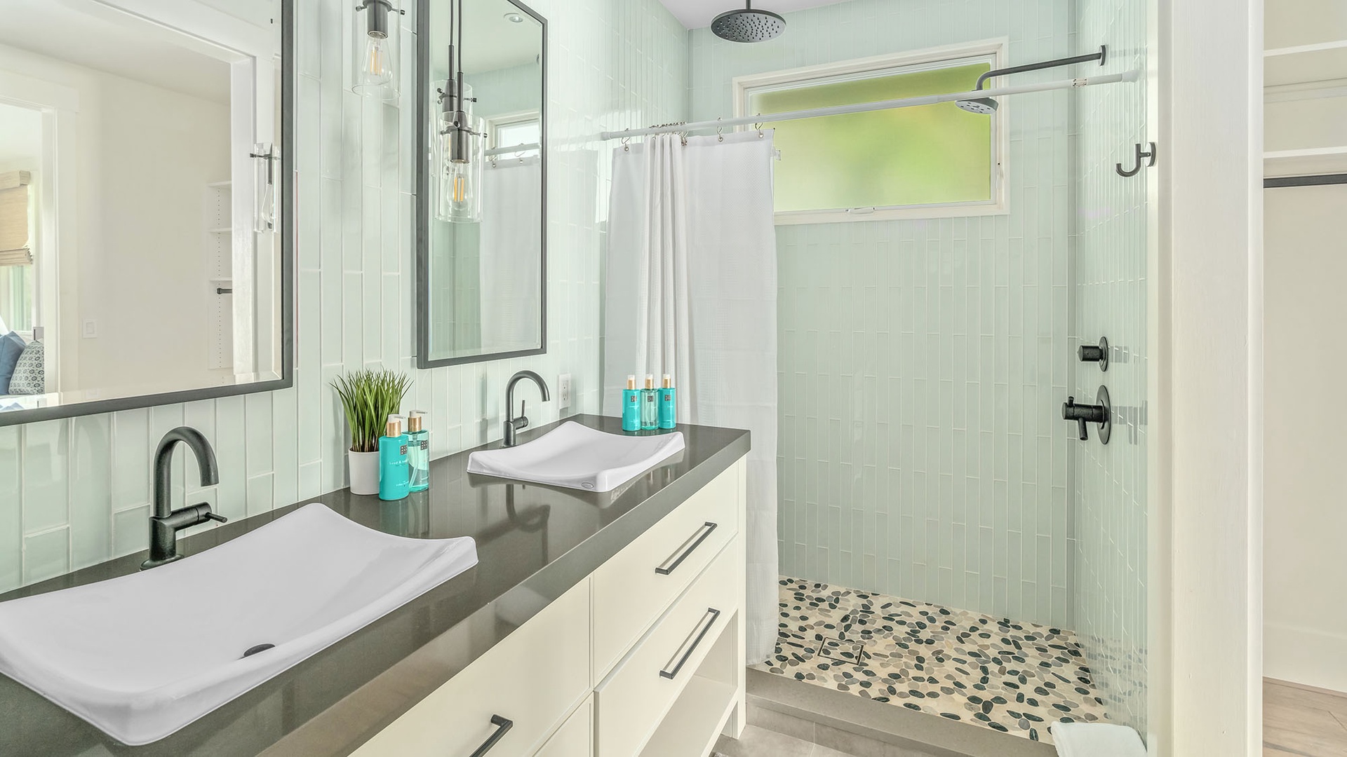 • Master Bedroom Suite – King bed, AC, full bath with walk-in shower, separate tub, access to private lanai