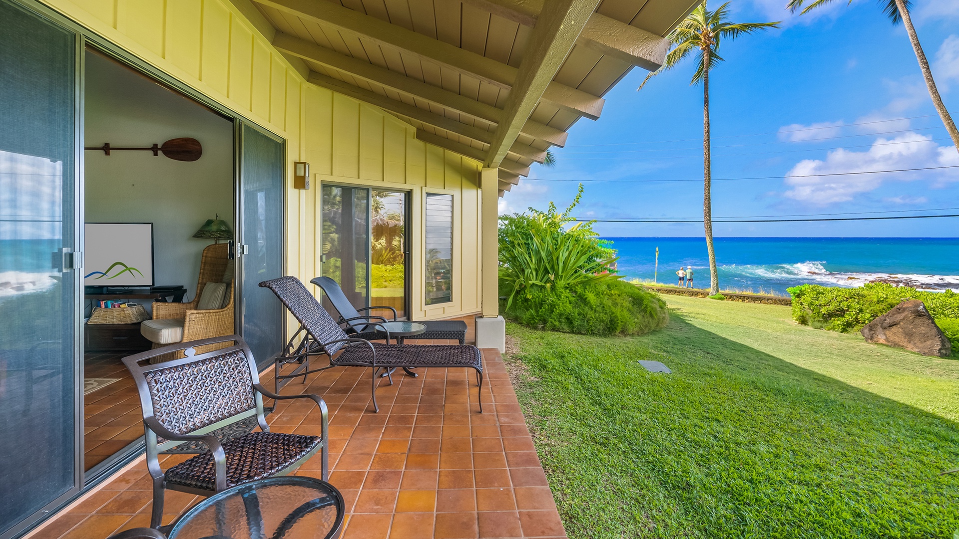 So many good things about this condo: location, location, location. Cocktails on the Lanai steps away from the ocean with unobstructed view to see seals sleeping on the surf while the sun sets. The condo is so close to the beach that it was easy to go back and forth for lunch or drinks. And if you want to cook any meals, the condo had everything you needed, including very clean and well maintained BBQ grills. Also available are beach chairs, beach towels, umbrellas, and coolers. Although each room had an AC unit, we preferred to sleep with the windows open to hear the waves break. The property manager was also very informative of local events and quick to fix the WiFi when it went down. And parking was a breeze. Overall, such an amazing condo!