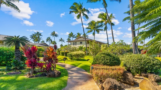 One of the best locations in sunny Poipu Beach Kauai, Nihi Kai Villas Resort is just steps away from the Poipu shoreline and a little over 300 yards to world-famous body surfing Brennecke’s Beach and Poipu Beach Park. The plantation style architecture at this small island oasis by the sea is surrounded by swaying palms, tropical flowers, fruit trees, orchids, and mature plumeria trees accented by well manicured lawns.