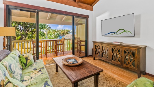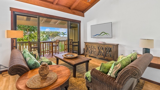 • Large flat screen TV in living room, AC, private ocean view lanai
