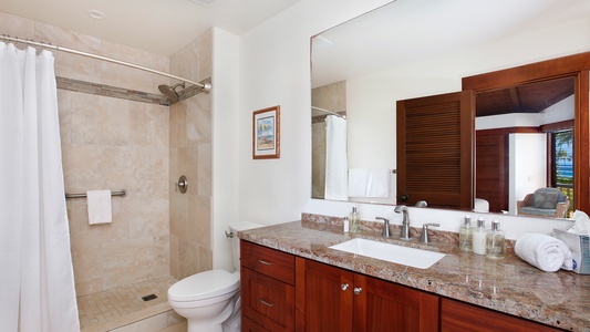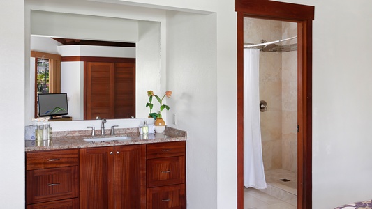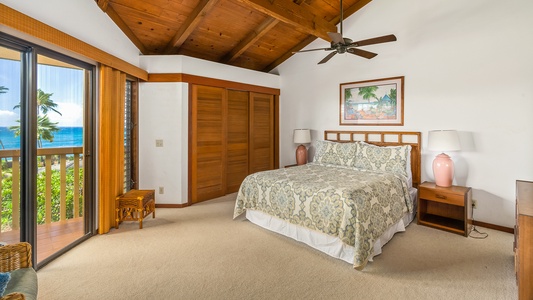 • Master Suite – ocean view, AC, queen bed, private lanai, full bath with walk-in shower