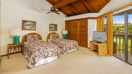 • Second Suite – two twin beds (convertible to king), AC, TV, private lanai, full bath with walk-in shower