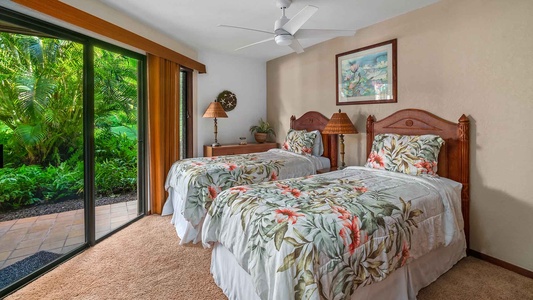 A wonderfully beautiful location and very conveniently located to all the sites and activities of the South Shore. Minutes from the local beach where sea turtles swim. And you can view the passing whales and dolphins/porpoises in season from the front wall of the Nihi Kai . . (the locals often refer to the people sitting on the lava rock stone wall as the ‘Wallnuts’ observers.) Beautifully appointed with upgraded furnishings; furniture; linens; cookware; all of which makes it feel like a second home. Modern appliances allow for easy cooking, but restaurants are either within walking distance or a very short drive away. Ceiling fans in every room make for the proper air circulation so that you are totally content not to have direct air conditioning. Sea breezes come gently through the lanai windows; and all patio entrances are completely screened to preclude insect intrusions. The ocassional Gecko provides both entertainment and remaining minor insect control. Even lighting day or night due to the orientation of the front and back windows. You often wake up to the crowing of local roosters which populate the entire island. At least Kauai rooster will not wake you up before 8am or so, unlike the ones I have in my current home. Mike and Cindy run a first rate operation. Teri, the local manager of the property is just a phone call away and is quite responsive to any needs you may have, but you should have a trouble free stay at this beautiful, tranquil oasis.