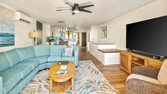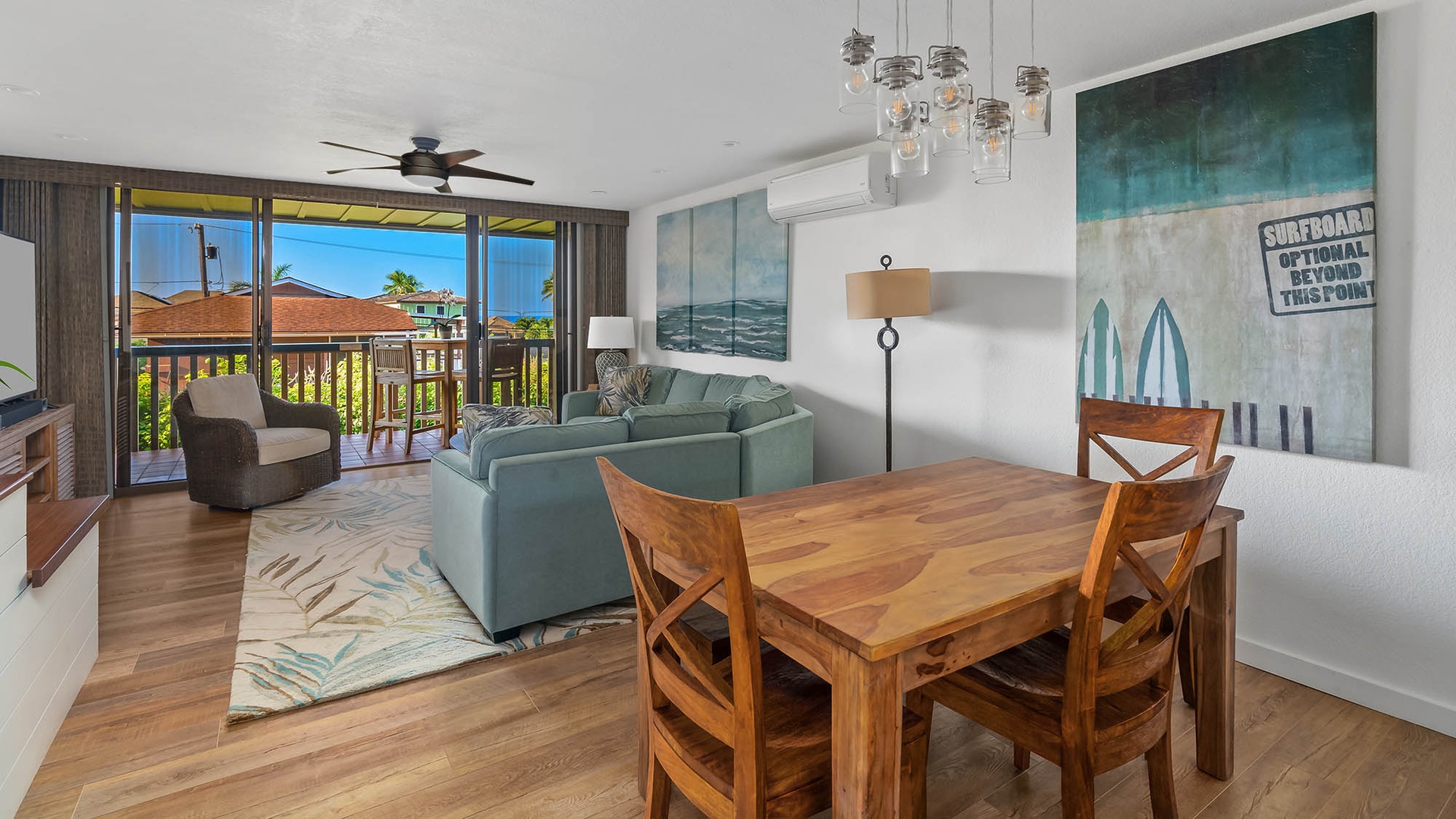 • Flat screen HD TV/DVR in living room, AC, private lanai with partial ocean view