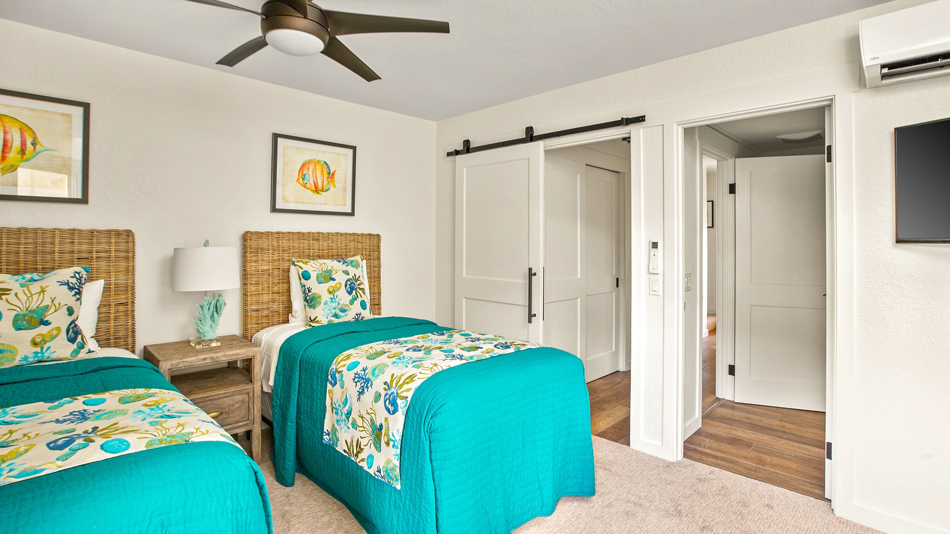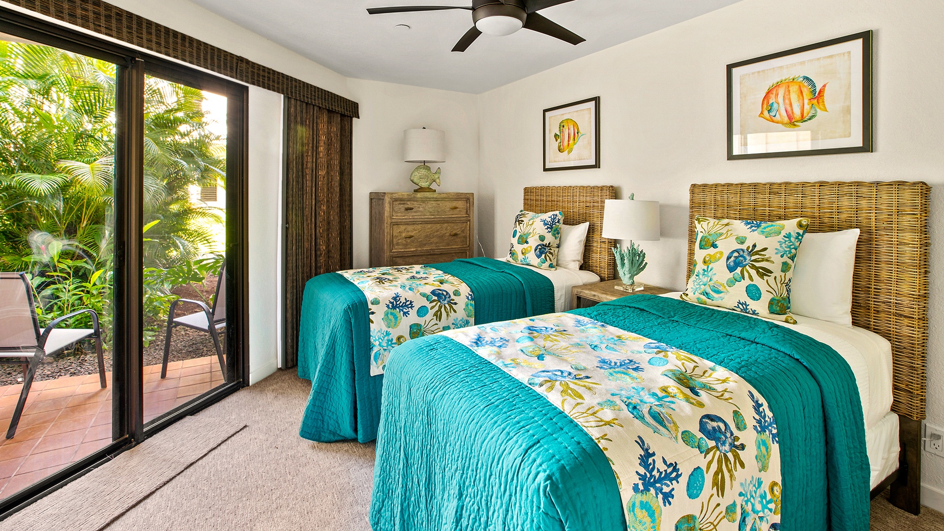 • Second Suite – lower level, AC, two twin beds (convertible to king), private lanai, full bath tub with shower