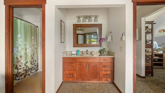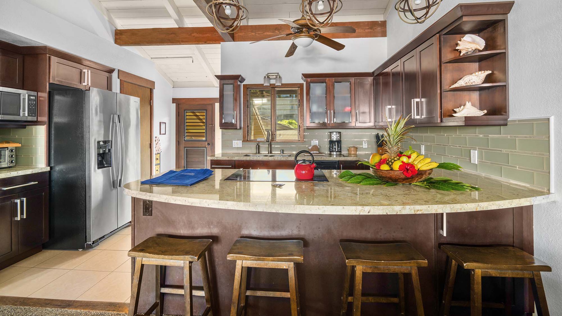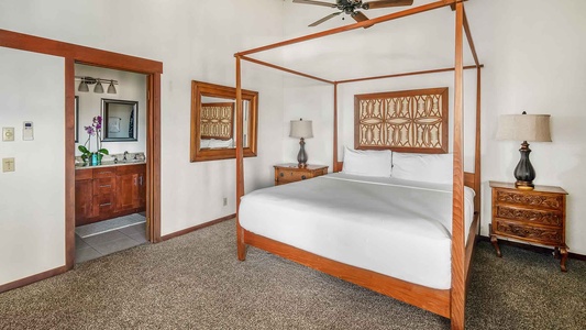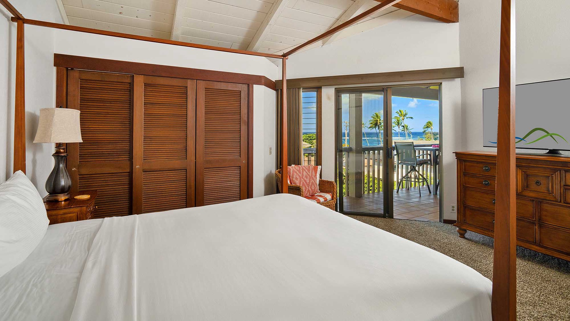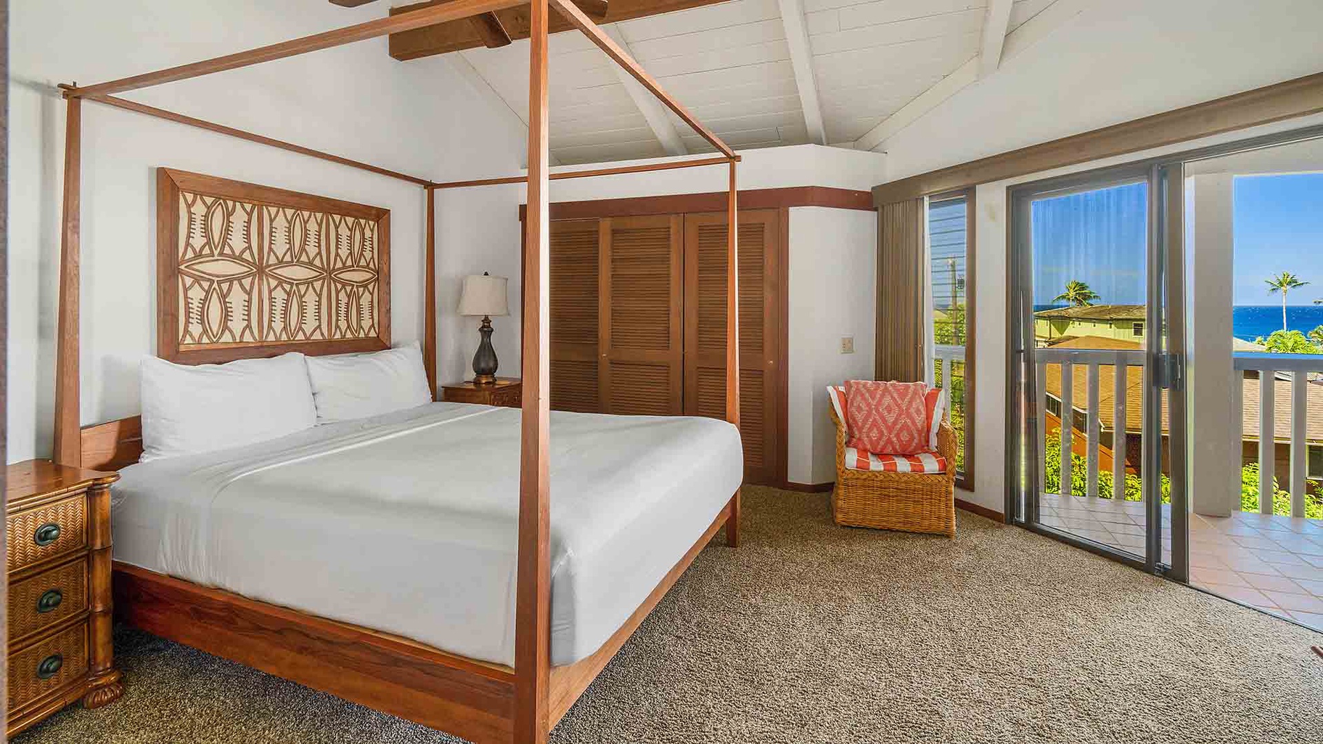 • Master Suite – king bed, flat screen TV, AC, private ocean view lanai, full bath with walk-in shower