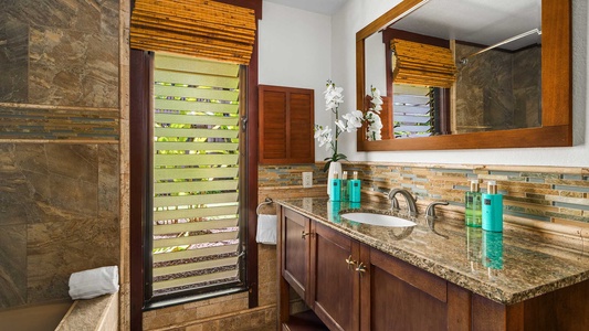 • Master Suite – lower level, king bed, AC, flat screen TV, private lanai, full bath tub with shower