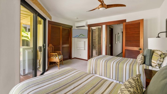 • Second Suite – lower level, two twin beds (convertible to king), AC, flat screen TV, private lanai, full bath tub with shower
