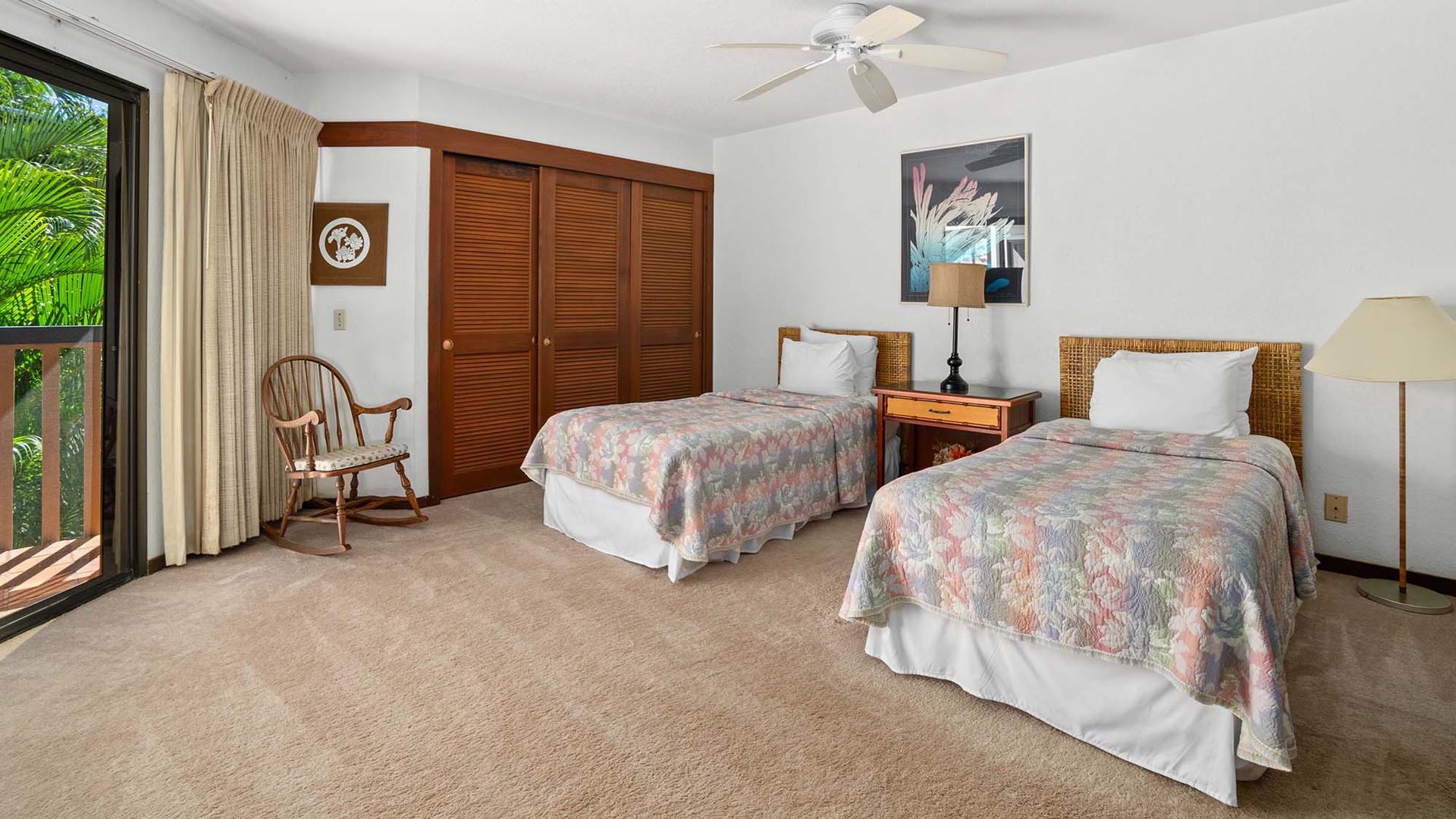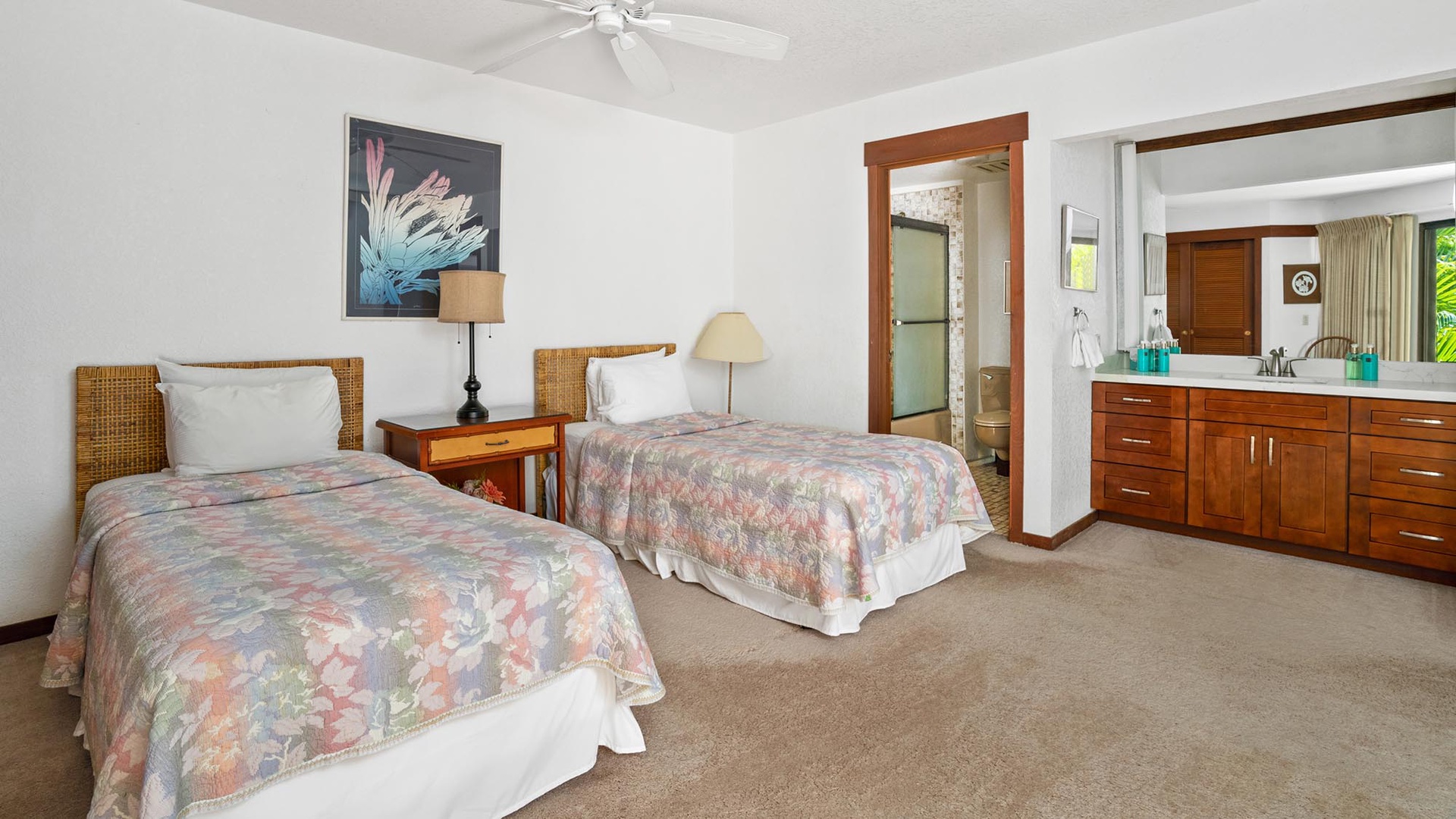 • Second Suite – AC, two twin beds (convertible to king), private lanai, full bath with tub and shower combination