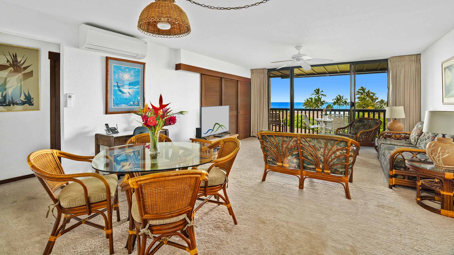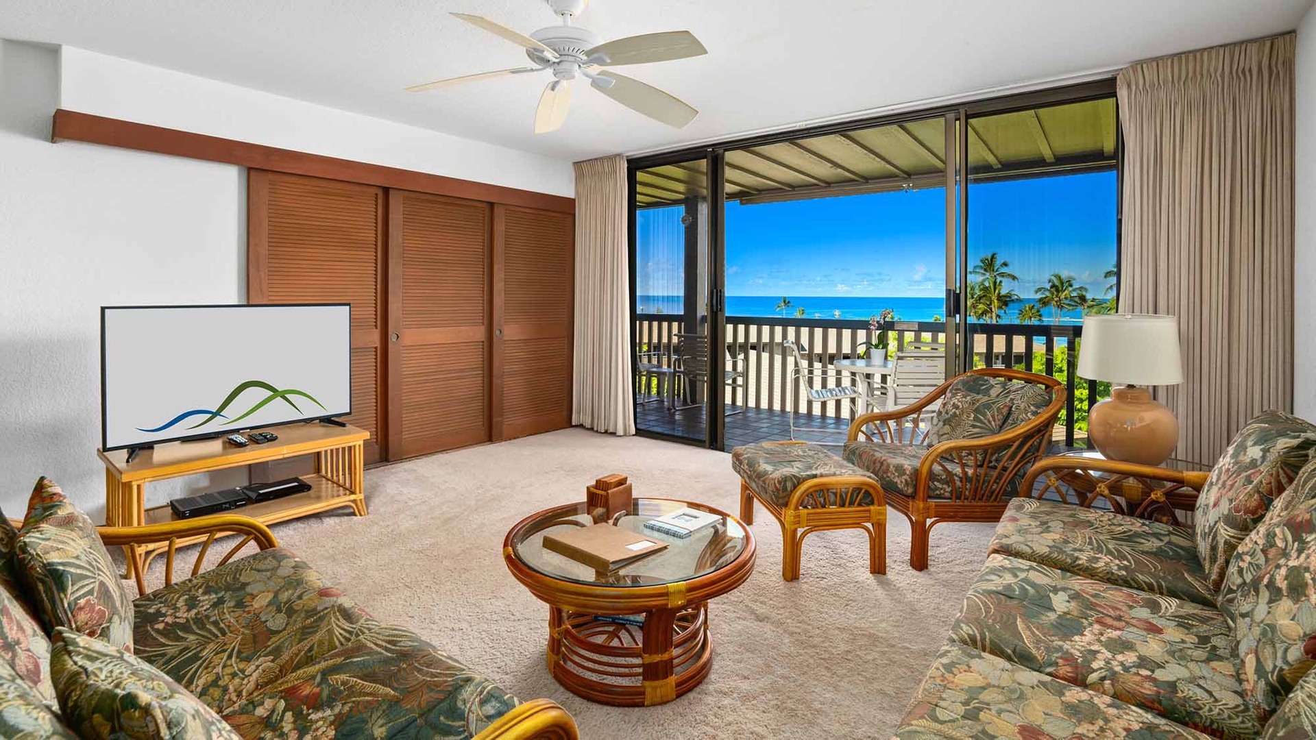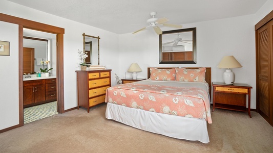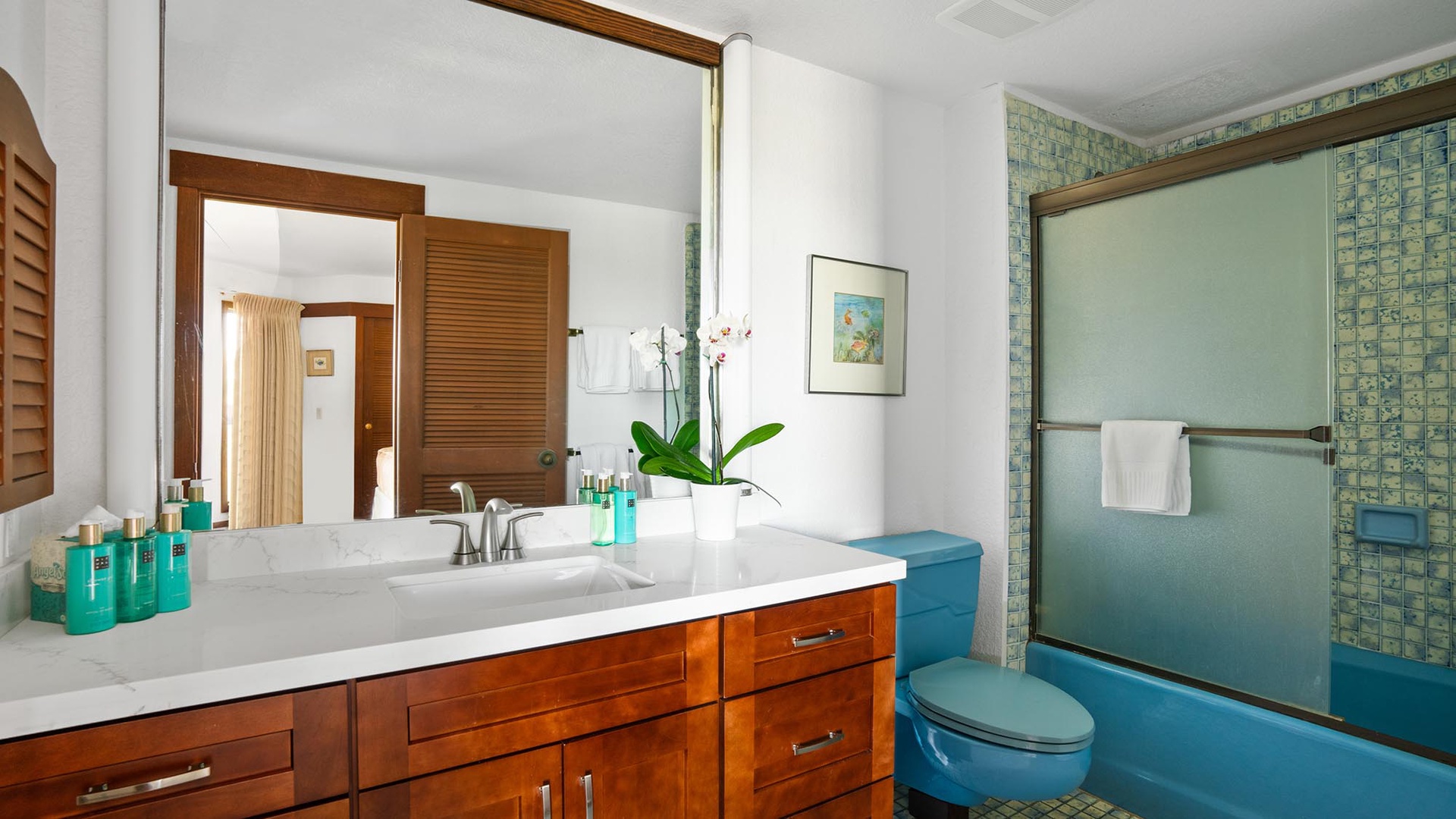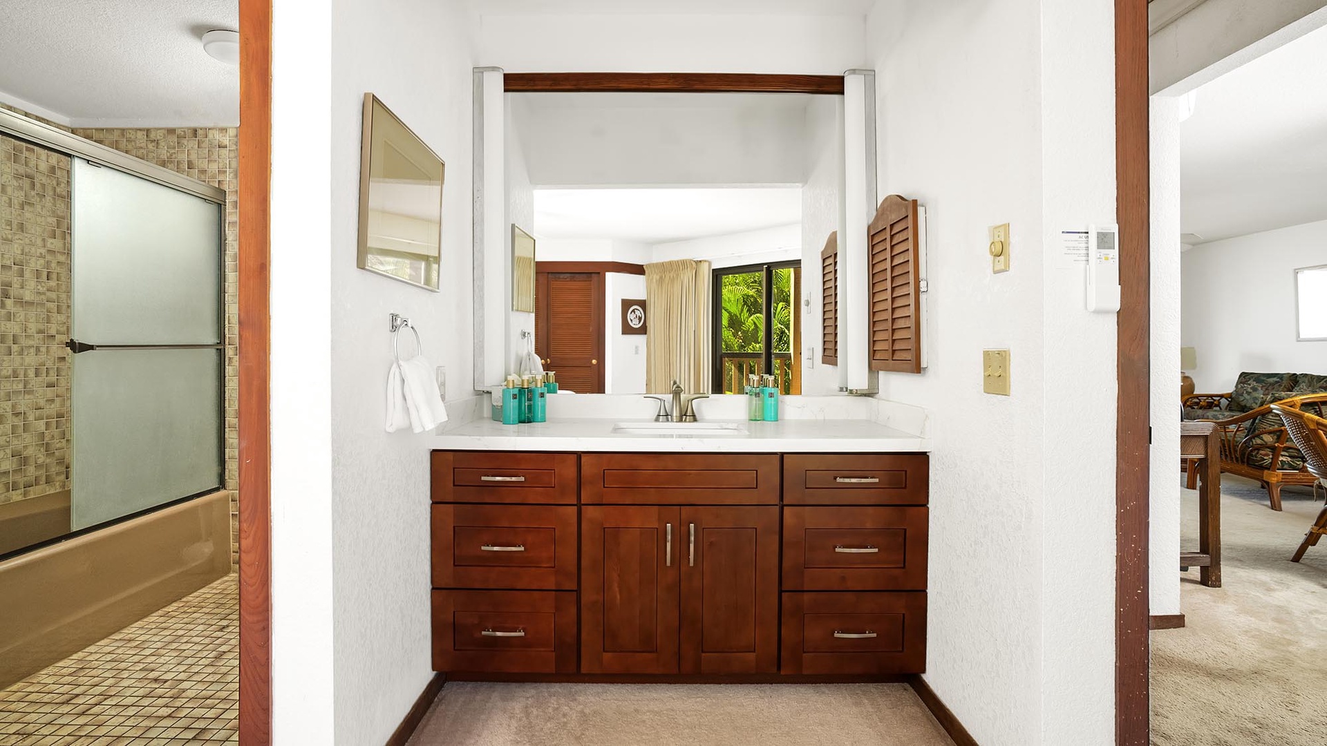 • Master Suite – AC, king bed, private ocean view lanai, full bath with tub and shower combination