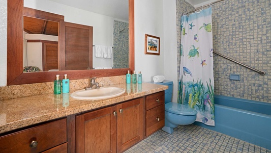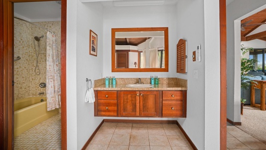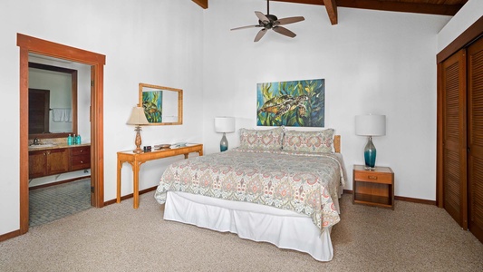 • Master Suite – AC, king bed, flat screen TV/Roku, private ocean view lanai, full bath tub with shower