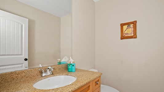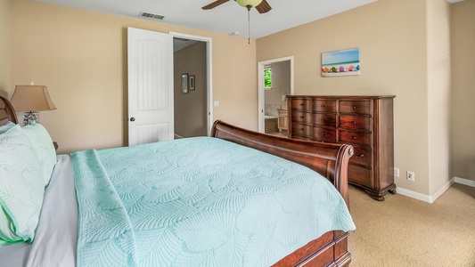 • Third Bedroom – upper level, queen bed, flat screen TV, shared full bath tub with shower combination, private vanity, AC