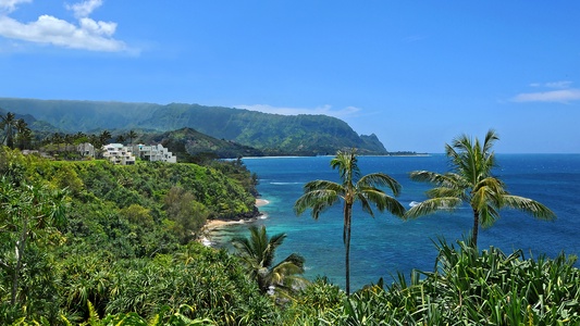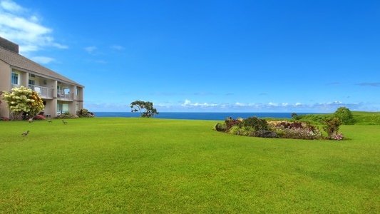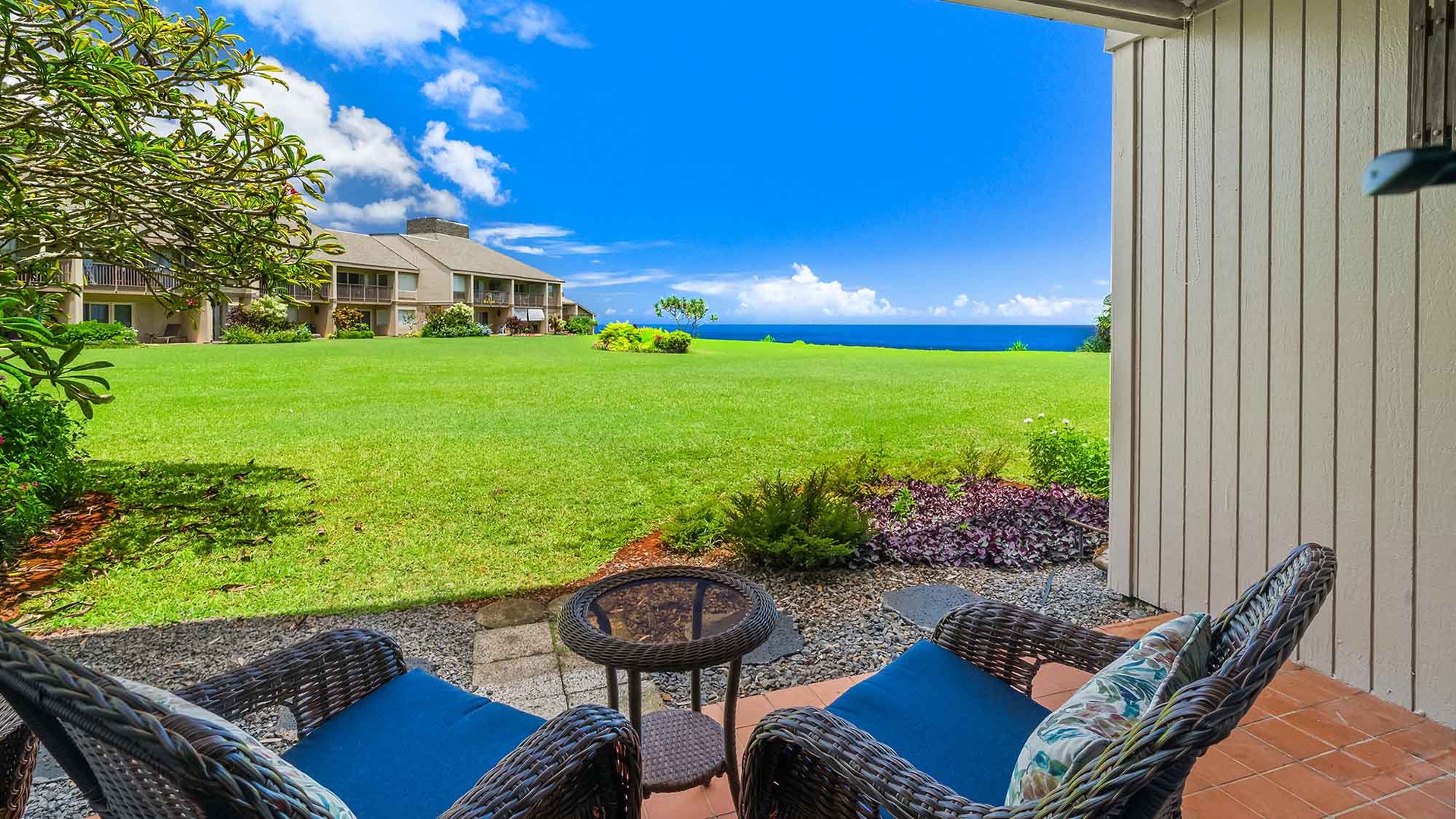 Great Princeville location with a large grass area that leads to the bluffs overlooking the ocean. Walkable to Hideaways beach. Also has a great path down to the private Pali Ke Kua beach.