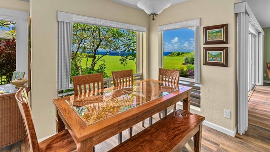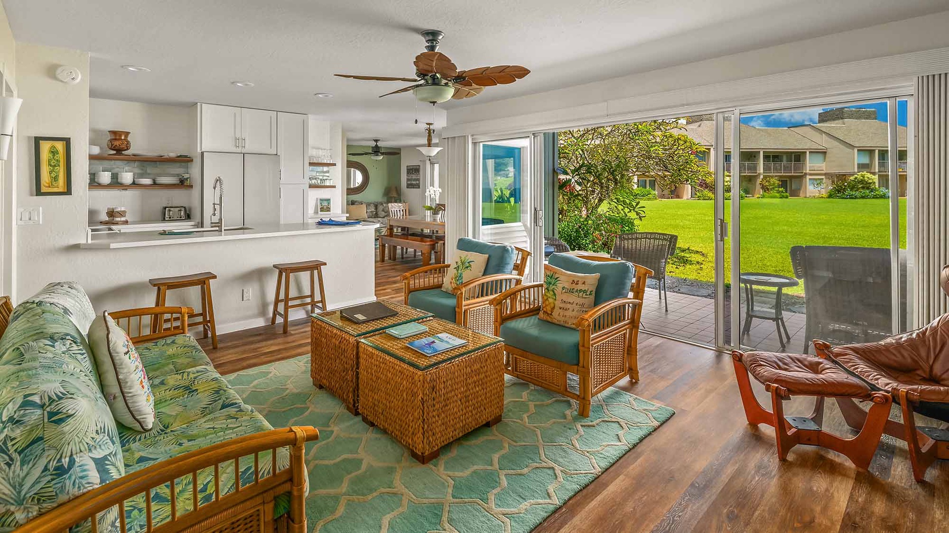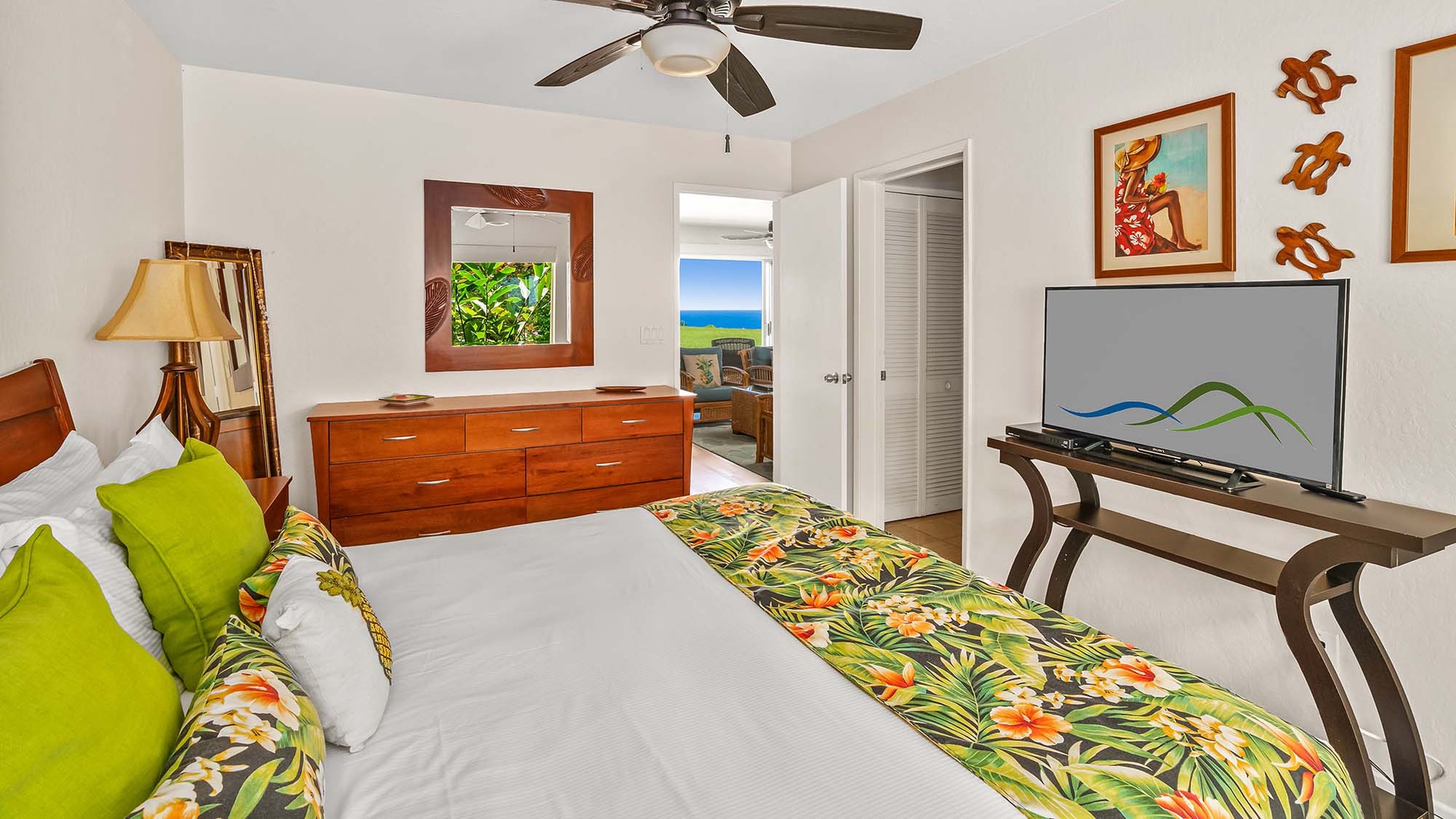 This condo has truly incredible views right out the window and comfortable outdoor furniture on private lanai where we spent most of our time. 2 minute walk to fantastic overlook! Updated kitchen and bath and fantastic service from Parrish and owner! We stayed 9 nights and truly enjoyed the property and surrounding areas, including the paved private beach access (it\'s steep but short!)