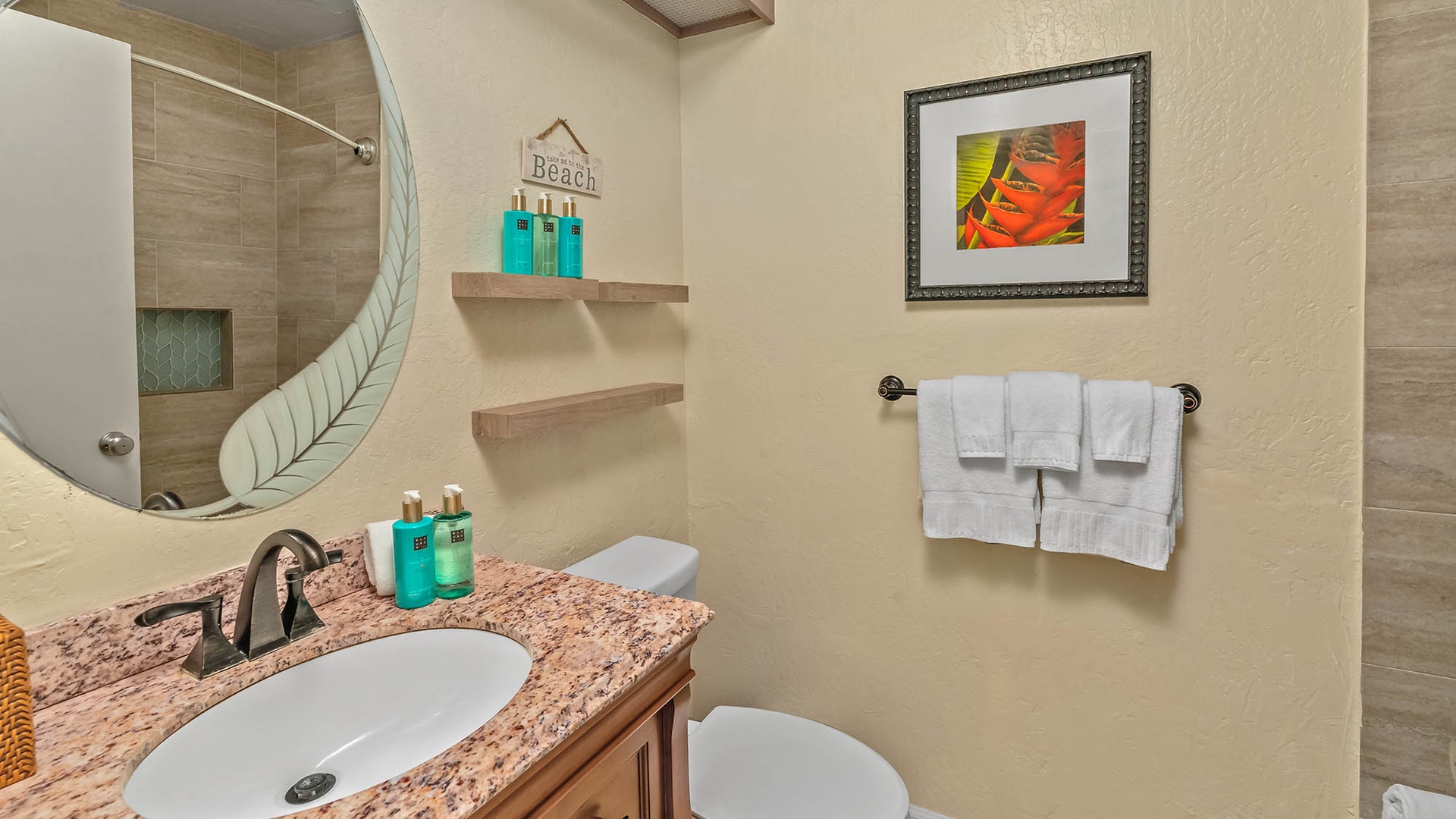 We loved having our morning coffee looking out at the sea from the lanai. Also appreciated the beach supplies for the adults and little one. Condo was comfortable and perfect for sharing space with family. Also loved having the convenience of a washer & dryer in the unit.