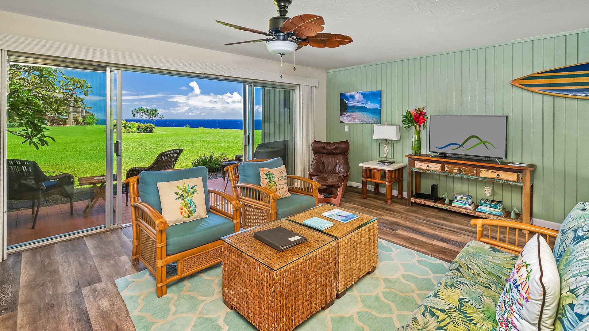 • Flat screen HD TV/BlueRay/DVD/CD/DVD library in living room, private ocean view lanai