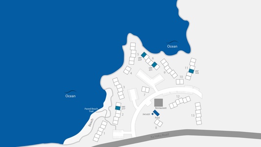 Lovely place! Well equipped with all you need. Location great. We love the beach just below the resort. Look forward to coming back!