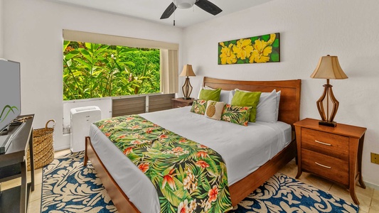 This place is glorious! The newly renovated condo has everything you need for a spectacular North Shore getaway. Perfectly positioned right by the cliff side overlooking over 180 degree views of the entire North Shore. Inside the home, there are special touches and amenities to suit your every need. Kitchen is modern and is more than well stocked with cooking supplies. Loved the “activity” closet and drawers with games, movies, books, boogie boards, coolers, snorkel gear, yoga mats, weights. You will no be bored! The decor is superb with so many islandy treasures and chic decor. AC in the master, but didn’t need it as the island breeze flows nicely through the place. The property is so nicely maintained. Great for walks among tropical gardens, and a short walk to awesome pool/hot tub and private beach. Thanks for the binoculars! I watched the whales from the lanai. This was my first solo sojourn to Kauai and I felt super safe and relaxed here. Enjoy paradise!