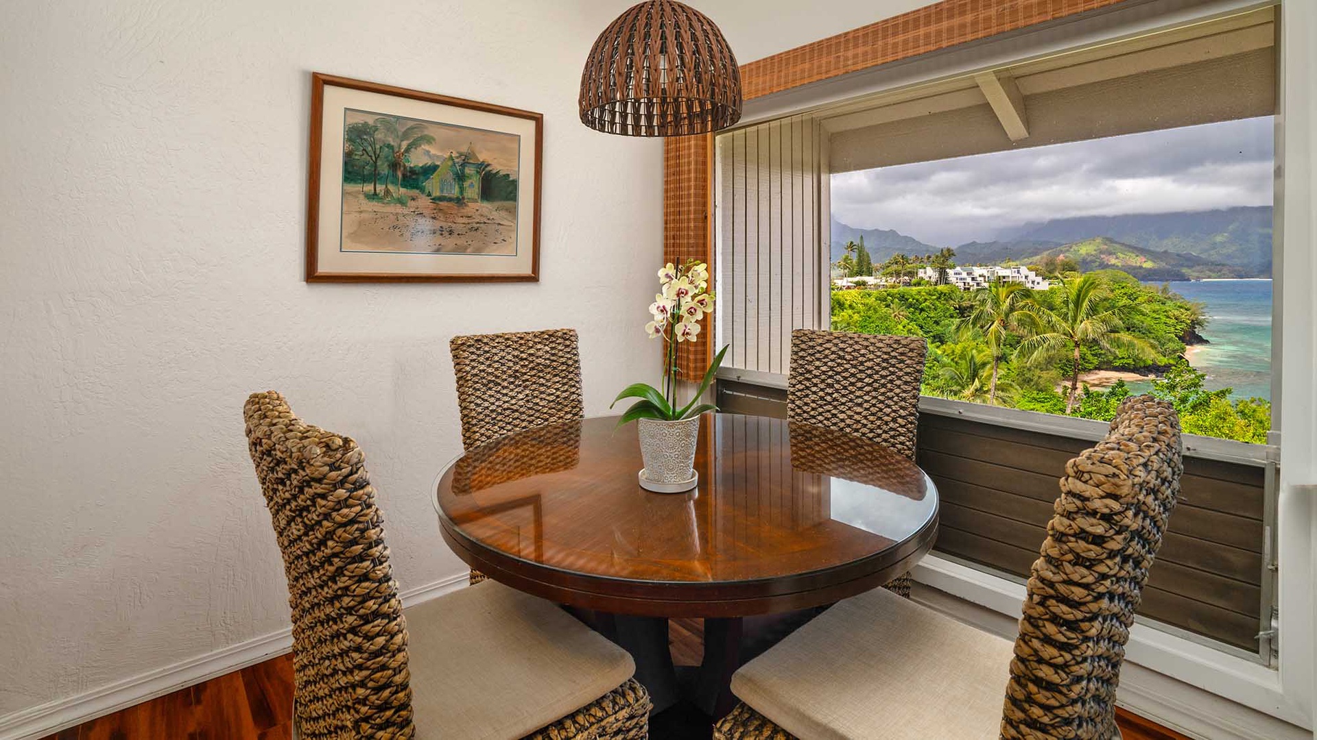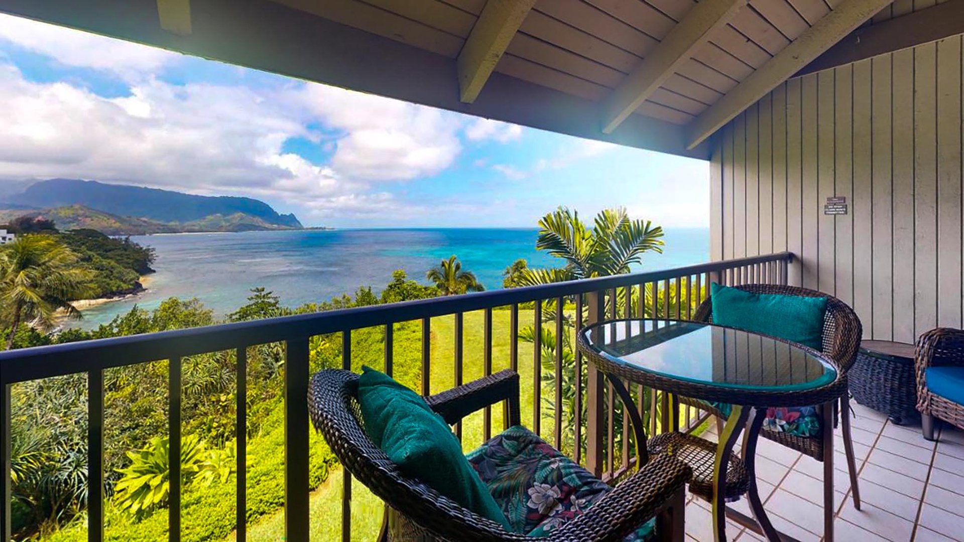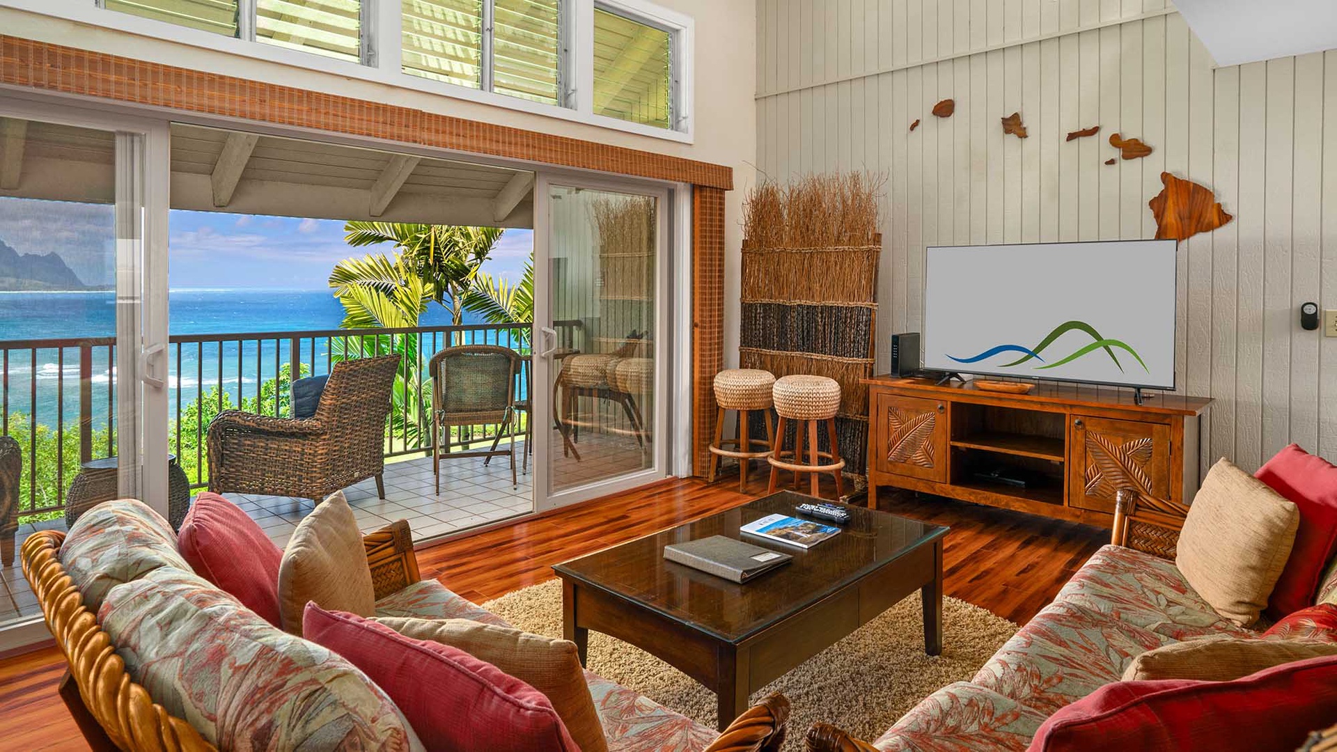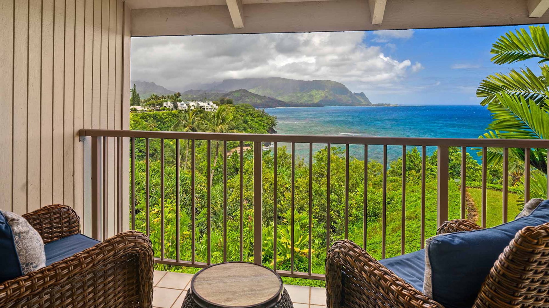 The view is what you come here for. Absolutely stunning. The lanai is a lovely place for morning coffee, sunset cocktails and listening to the surf at night. Condo is comfortable but it can get very hot, especially in bedroom upstairs. The afternoon sun heats the main room and the lack of screens on front door limits the amount of cross-breeze. I'm not an AC person but it was hot enough in October to need it. Good location in Princeville; near Hideaway beach for those up to the challenge of walking down to it; going for coffee or a drink at 1 Hotel down the street is a nice outing. Beach below resort is quite rocky and not very swimmable when we were there. Beach chairs and umbrella are in need of replacing. One of the 3 chairs was completely broken, as was the umbrella. Provisions on hand were meager (as in no or unusable salt, no sugar for morning coffee, etc.). Not expecting much but do expect the bare minimum. A quick trip to Costco is needed. Nice welcome basket on arrival with coffee, granola, etc. which was much appreciated. Vacasa is very good; easy to work with. We had problems with the lock and the person after hours was very patient with us on the phone telling us how to access the condo.