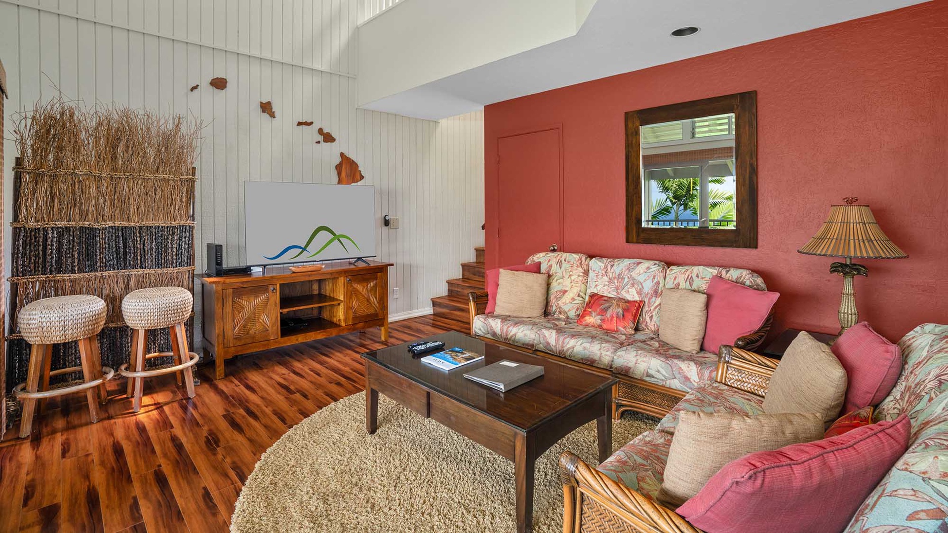 When you walk through our newest Princeville condo at Pali Ke Kua, you’ll find a perfect match between its soothing colors, generous space and dazzling ocean views from the great room, kitchen and dining area. Step outside on the lanai and you may see a rainbow over the ocean, humpback whales in season or an outrigger canoe team in the distance. With picture perfect views and space for up to four guests, this beautiful Kauai condo offers a relaxing vacation on the spectacular North Shore.