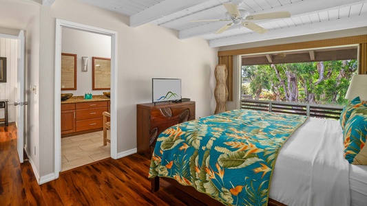 • Second Suite Open Loft – upper level, king bed, portable AC cooler, full bath with walk-in shower