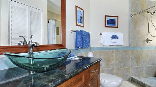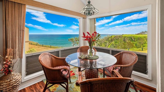 We arrived after dark, so we didn't get a clear view of our surroundings until the next morning. When we woke up and walked out onto the balcony....just WOW! Instant relaxation in beautiful paradise. The view, the sounds and smells of the ocean, we couldn't have asked for more in a home-away-from-home. This place is the real deal. The condo is very clean and comfortable and has everything you need to feel at home, plus lots of nice extras (beach chairs, boogie boards, binoculars and guide books). The location was perfectly situated for exploring the north shore. The shopping center down the street was very convenient for meals and groceries (definitely try The Spot!). Hanalei is a quick 10-15 minute drive down the hill. Mahalo for a wonderful stay. We wish we were there now but will definitely be back again!