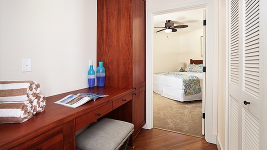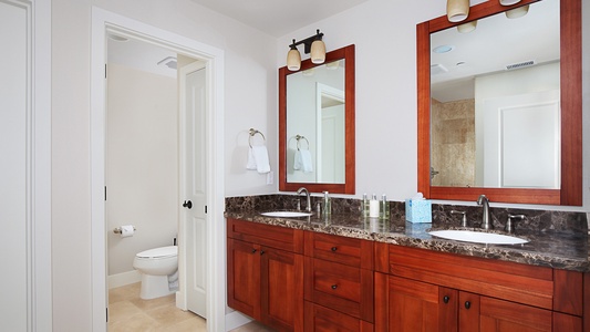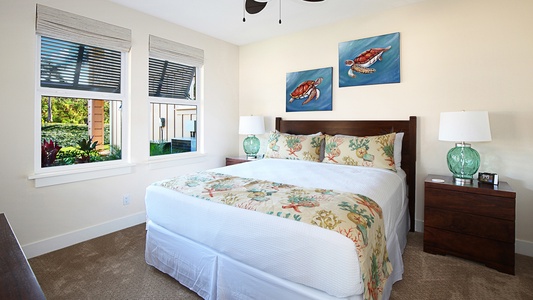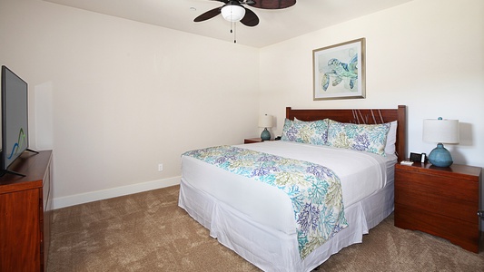 • Master Bedroom Suite – King bed, TV, full bath with walk-in shower, double vanity, large walk-in closet, access to shared lanai