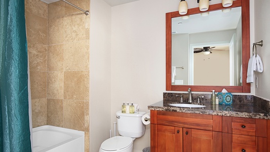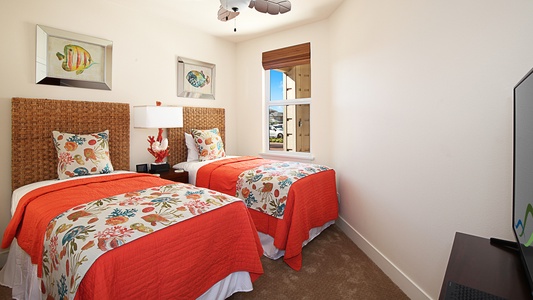 • Third Bedroom – 2 twin beds (convert to king), TV, shared full bath with tub and shower combination