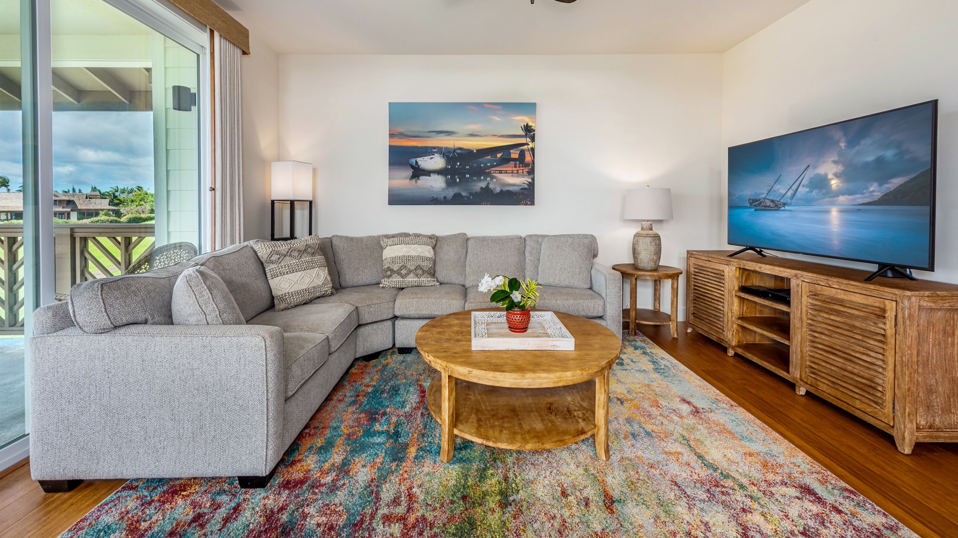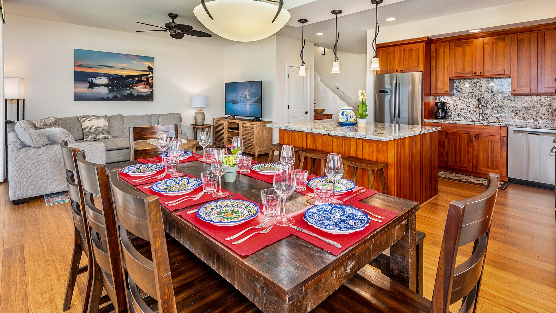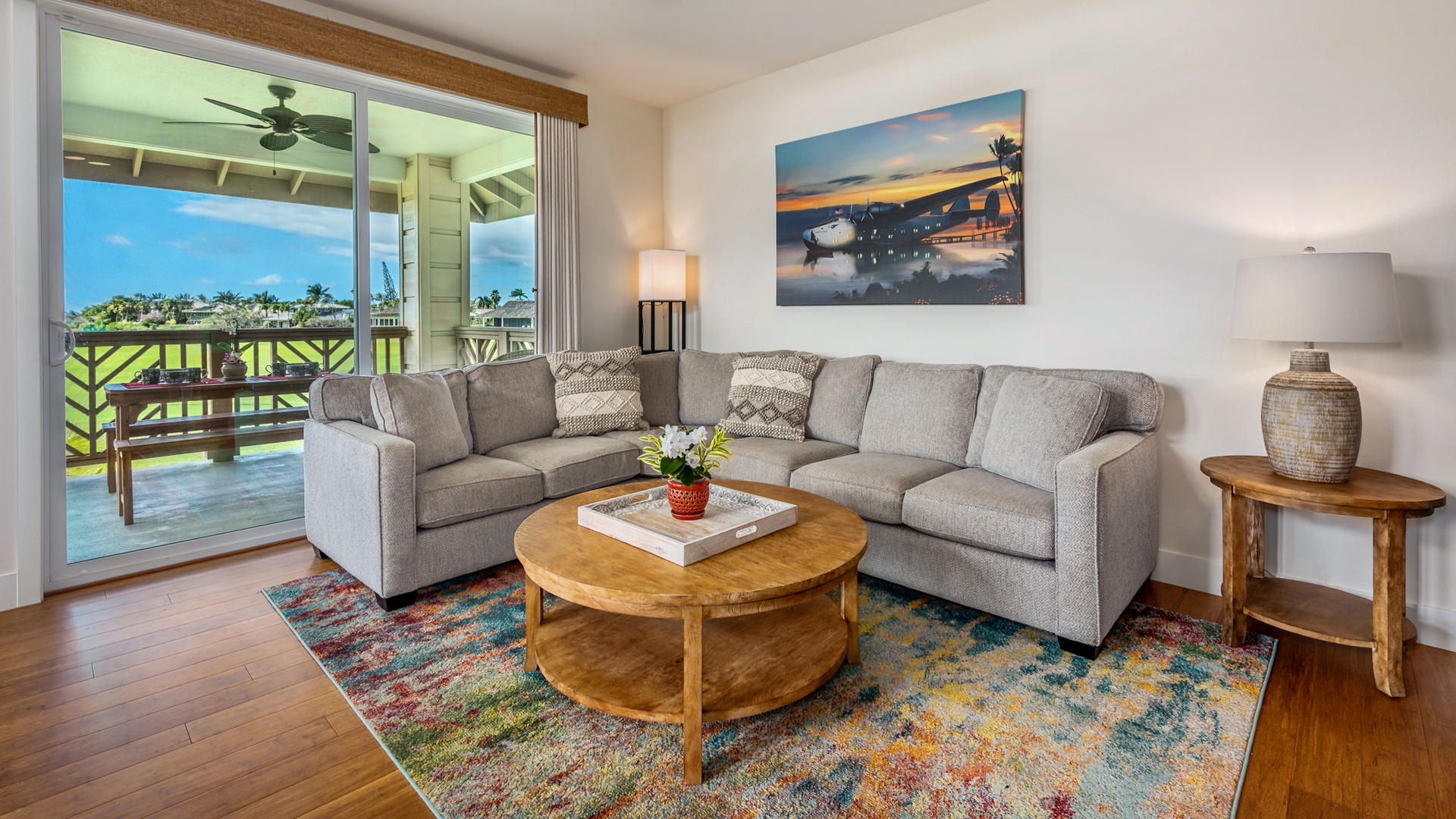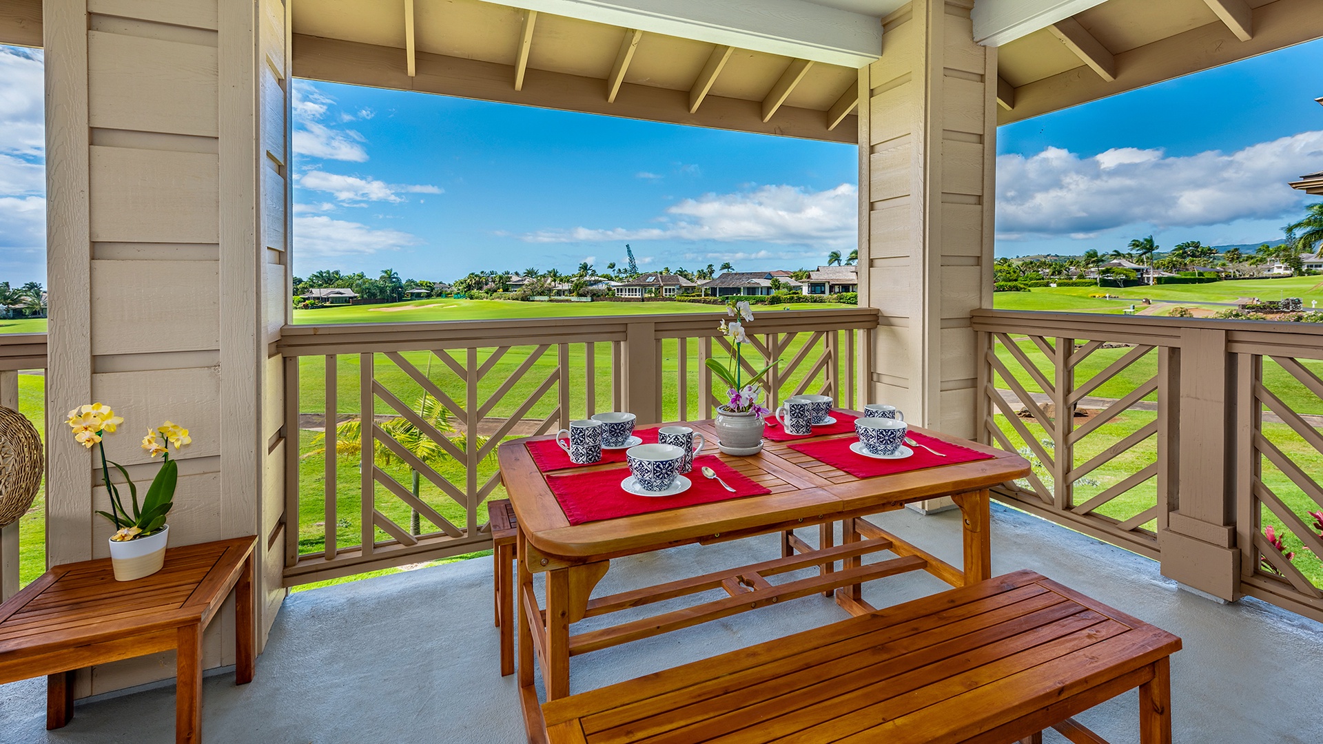 Pili Mai Unit 6E was the perfect place for our family to celebrate Christmas and New Year's together. The accommodations were spacious, clean, and extremely comfortable for our family (my wife and I and 4 adult kids). We especially LOVED the back porch and its view of the beautiful golf course, palm trees, and being able to see the ocean. The proximity to the Poipu beaches was a definite plus. We would definitely stay there again.