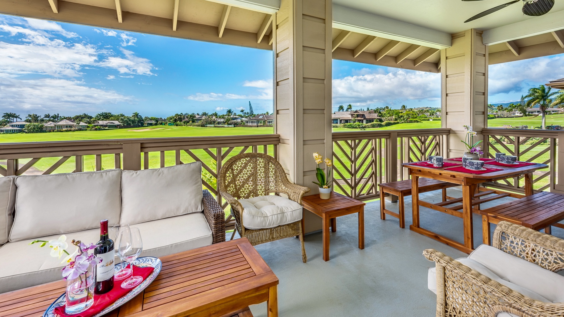This central Poipu location offers ocean, golf course, and mountain views and is within walking distance to additional dining, shopping, and entertainment at Poipu Shopping Village and a short distance to world famous Poipu Beach.