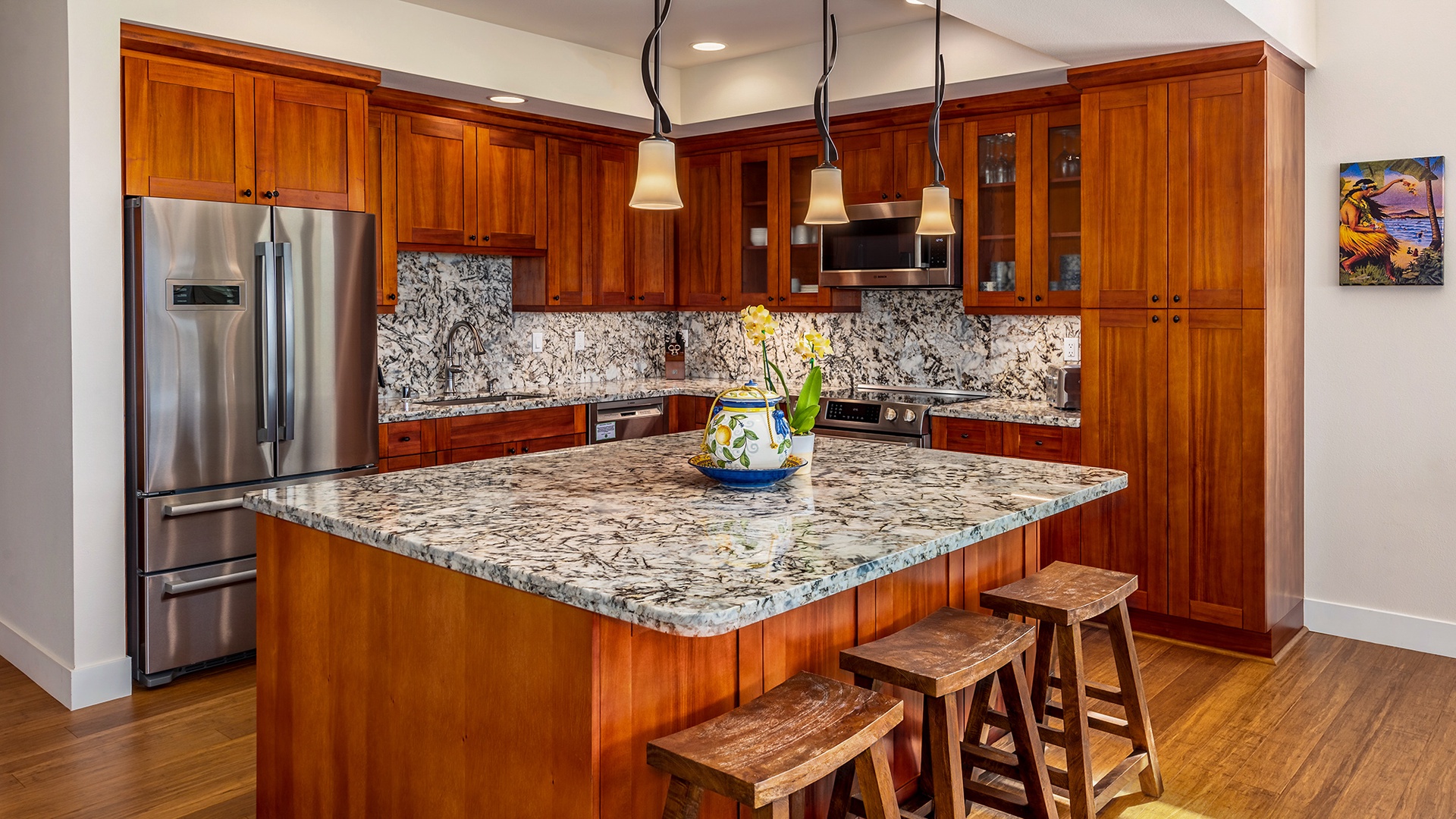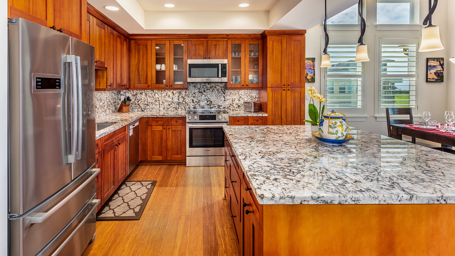 • Fully equipped kitchen with granite counters and stainless gourmet appliances