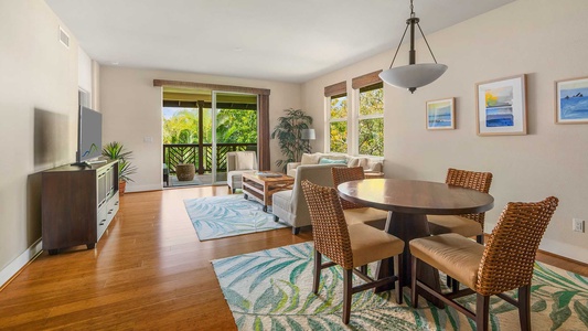 This central Poipu location offers golf course and mountain views and is within walking distance to additional dining, shopping, and entertainment at Poipu Shopping Village and a short distance to world famous Poipu Beach.