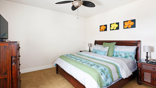 This central Poipu location offers ocean, golf course, and mountain views and is within walking distance to additional dining, shopping, and entertainment at Poipu Shopping Village and a short distance to world famous Poipu Beach.