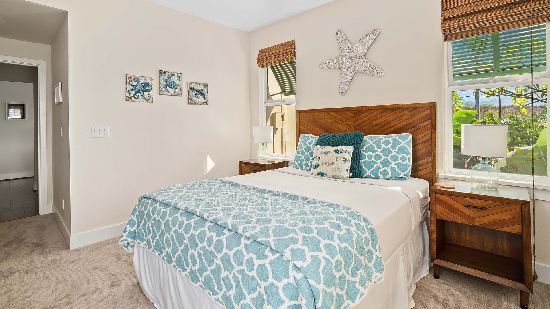 This central Poipu location offers ocean, golf course, and mountain views and is within walking distance to additional dining, shopping, and entertainment at Poipu Shopping Village and a short distance to world famous Poipu Beach.