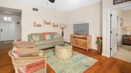 The location is perfect. You can walk to a few restaurant and coffee options at the nearby shopping center and the local beaches are nearby. We enjoyed our stay at this unit. It was very clean and looked like the pictures. There is nice spacing between the bedrooms for two couples. Lots of beach day items in the garage were appreciated. There were a few issues though. It\'s a bit noisy. You will hear every footstep from upstairs. There is also some noise from the nearby roadway and air conditioners turning on and off. The pictures in the listing show a tv in each bedroom, however neither of those tvs is hooked up to any kind of input. This was a major issue for us as one person in our party really likes to watch tv, but with only the main tv connected he took over the entire living space and annoyed the rest of us. What is the point of having additional tvs if there is no cable or anything else connected. We had some trouble with the oven turning off anytime we opened it to check on something. The oven control would flash an error and then turn off. We didn't use it much but did manage to overcook some food because of it. The parking for this unit is in front of the garage. During our stay the upstairs neighbor had 2 cars parked in front of their garage which made it almost impossible to back out as it's a curved driveway with a rock wall on one side. Notified management but kept happening.