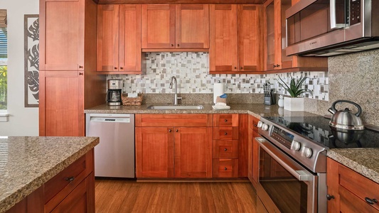 • Fully equipped kitchen with granite counters and stainless gourmet appliances