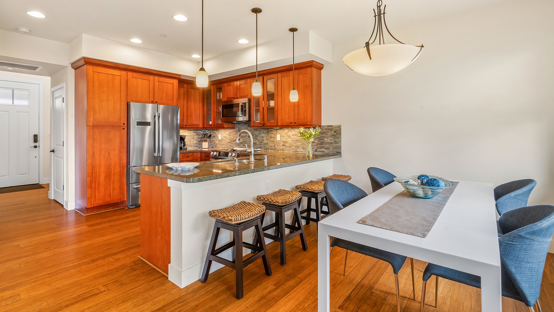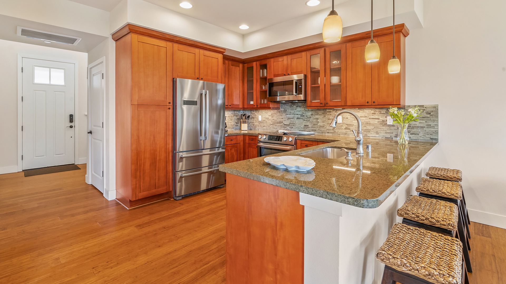 • Fully equipped kitchen with granite counters and stainless gourmet appliances