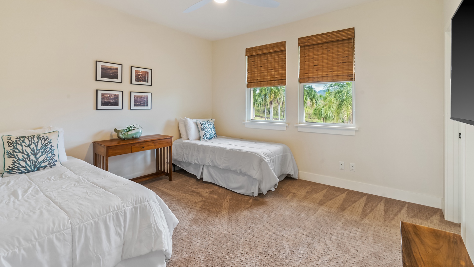 This VRBO is placed close to Poipu beach, markets, and surrounding towns. Something of note, you need to walk through the 3rd bedroom (two single beds picture) to access a bedroom. We would stay here again!