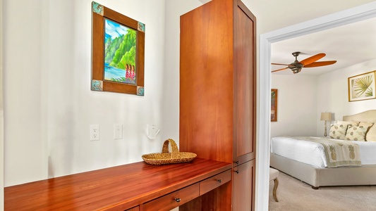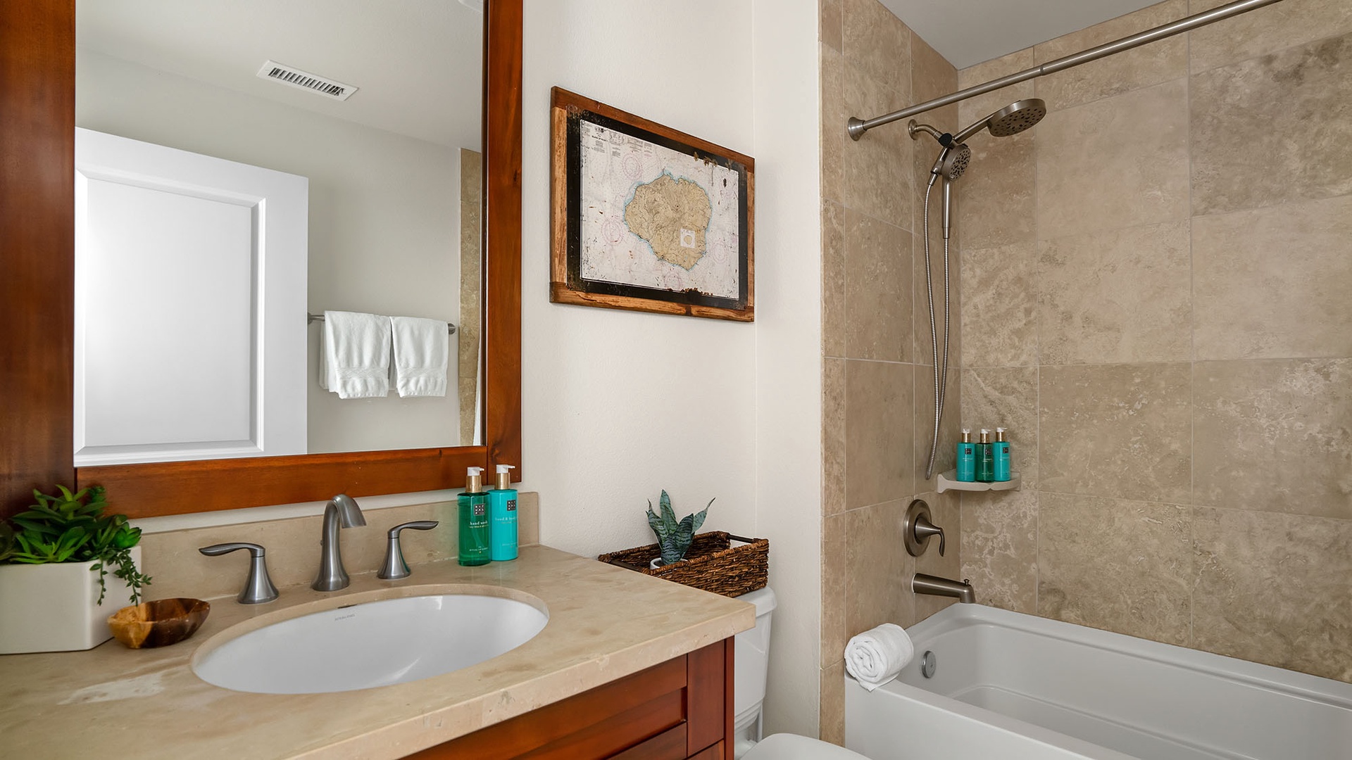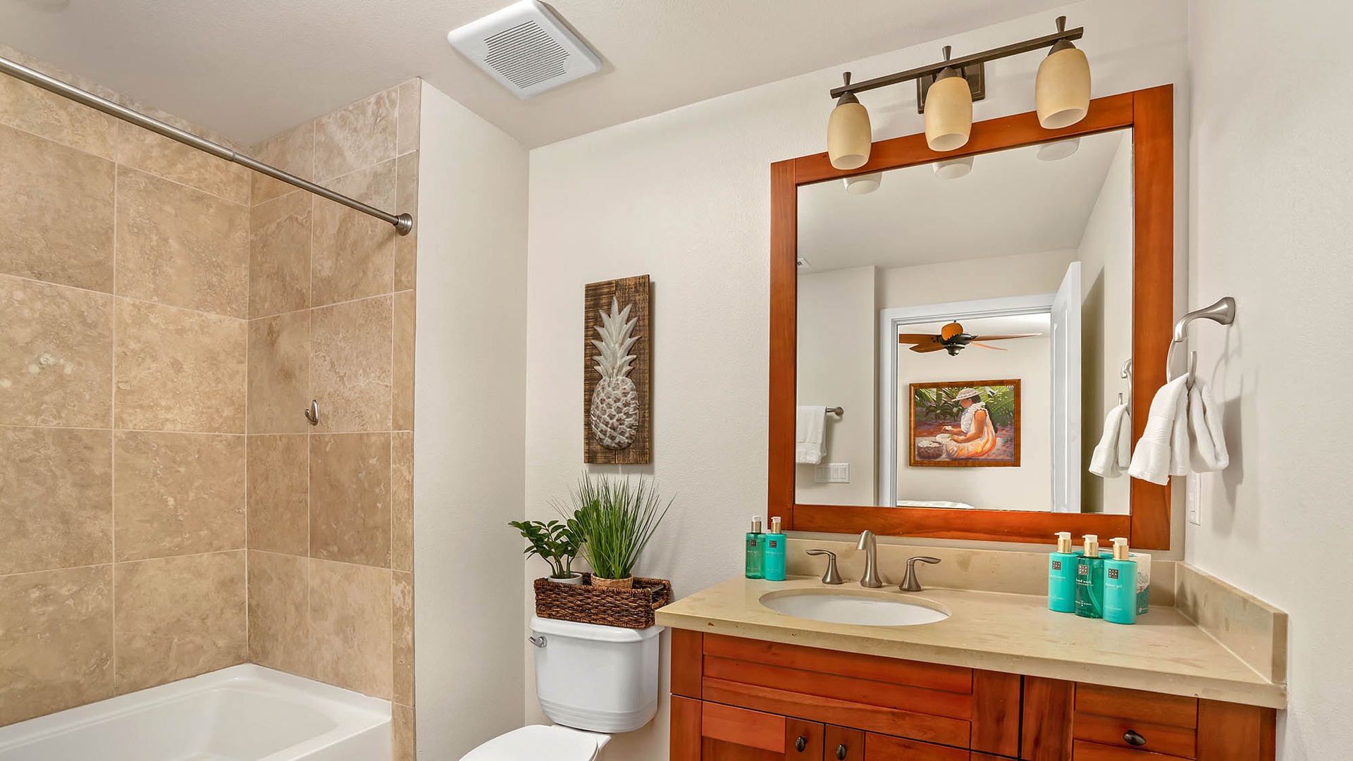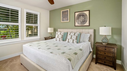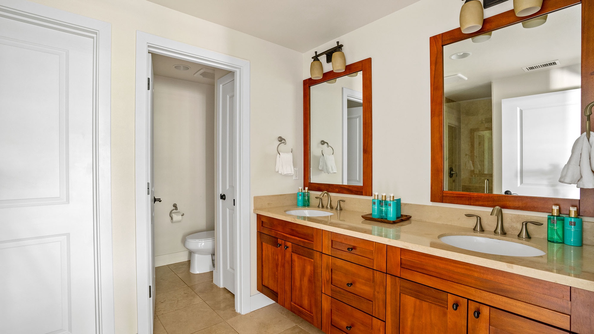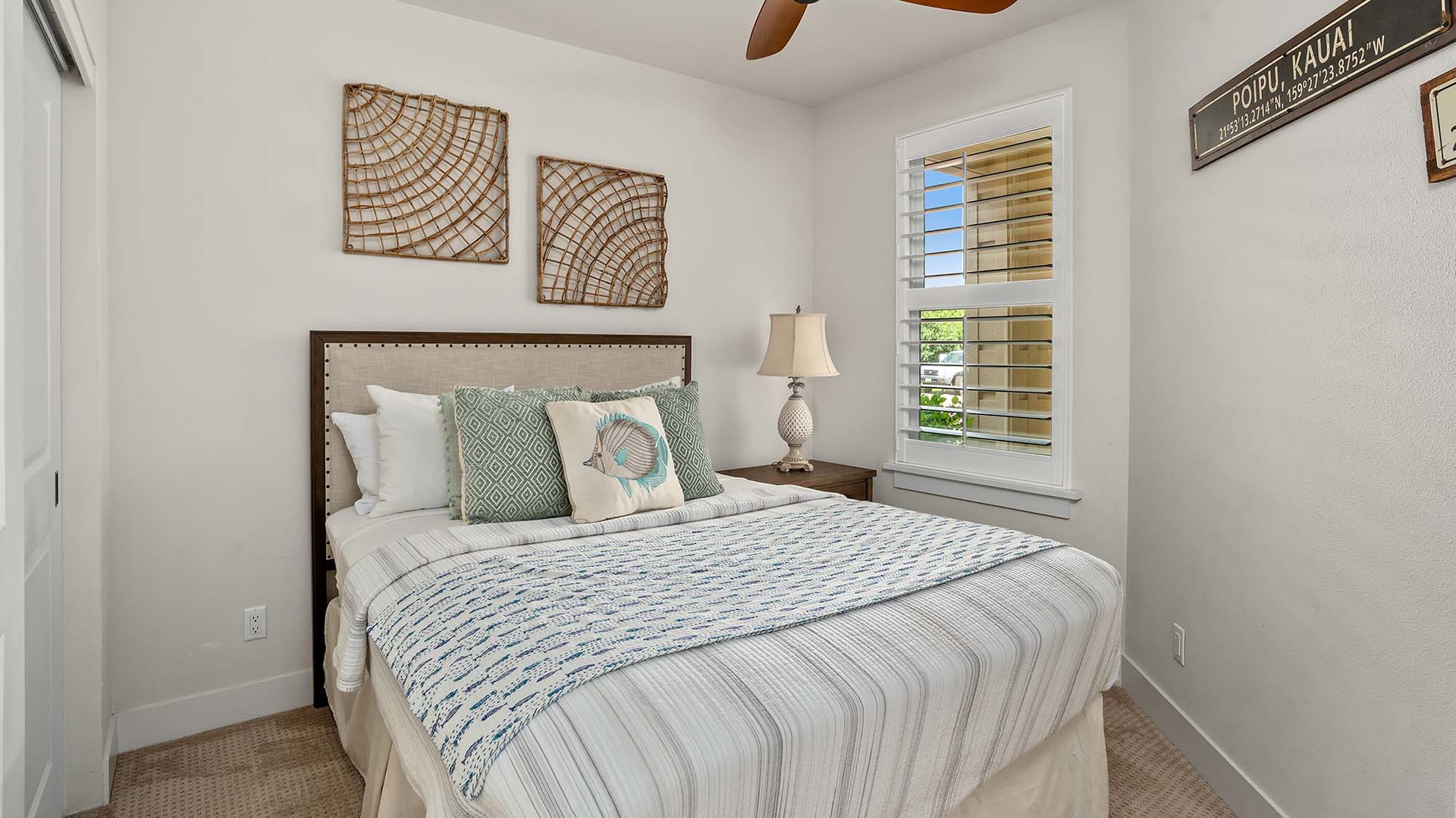• Master Bedroom Suite – King bed, TV, full bath with walk-in shower, double vanity, large walk-in closet, access to shared lanai