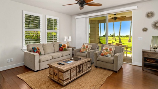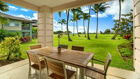 We had an absolutely lovely stay here. Not only is it a beautiful condo with a layout that allowed 6 of us to have our own space and bathrooms, it had everything we could need for our stay. It truly felt like our own home. We spent every morning out on the patio enjoying the view of the golf course, the ocean and all the wildlife, and every evening at the pool. It's a perfect place to wind the kids down, and it's right across from this unit! The kitchen is fully stocked with anything you need to cook family meals, and the beach supplies (chairs, umbrella, toys) made it so easy to enjoy a day on the beach. It was so quiet and peaceful around us, you couldn't ask for a more perfect Kauai experience.