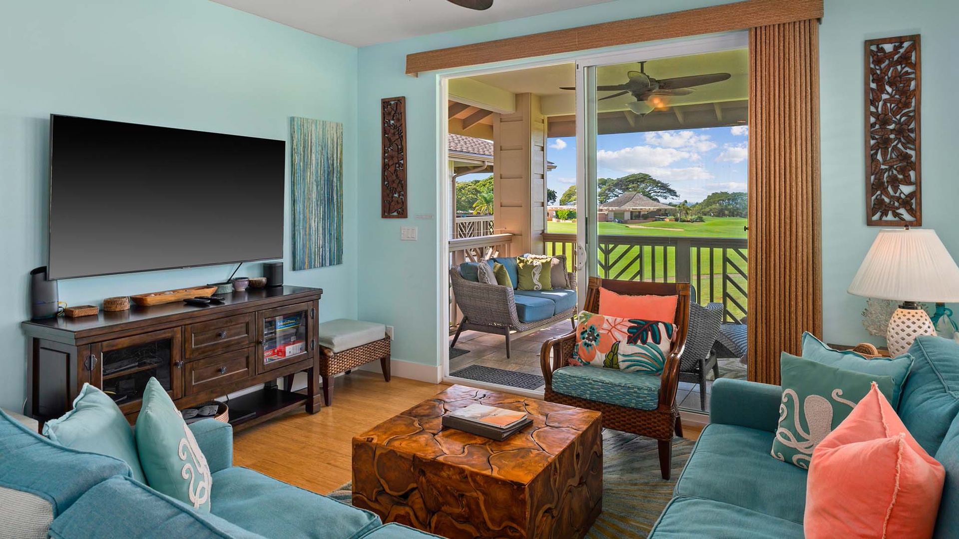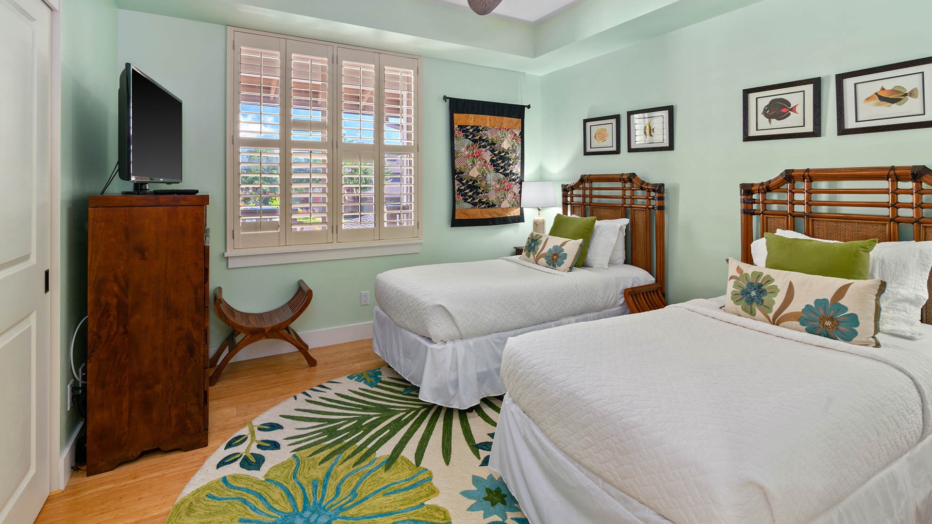 This central Poipu location offers ocean, golf course, and mountain views and is within walking distance to additional dining, shopping, and entertainment at Poipu Shopping Village and a short distance to world famous Poipu Beach.