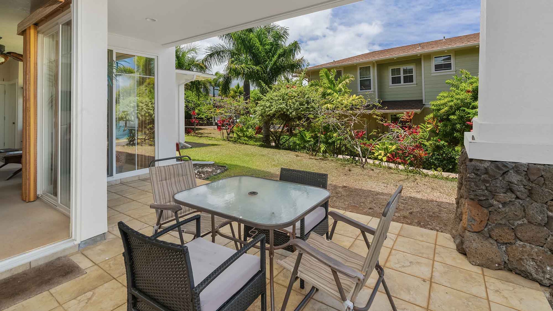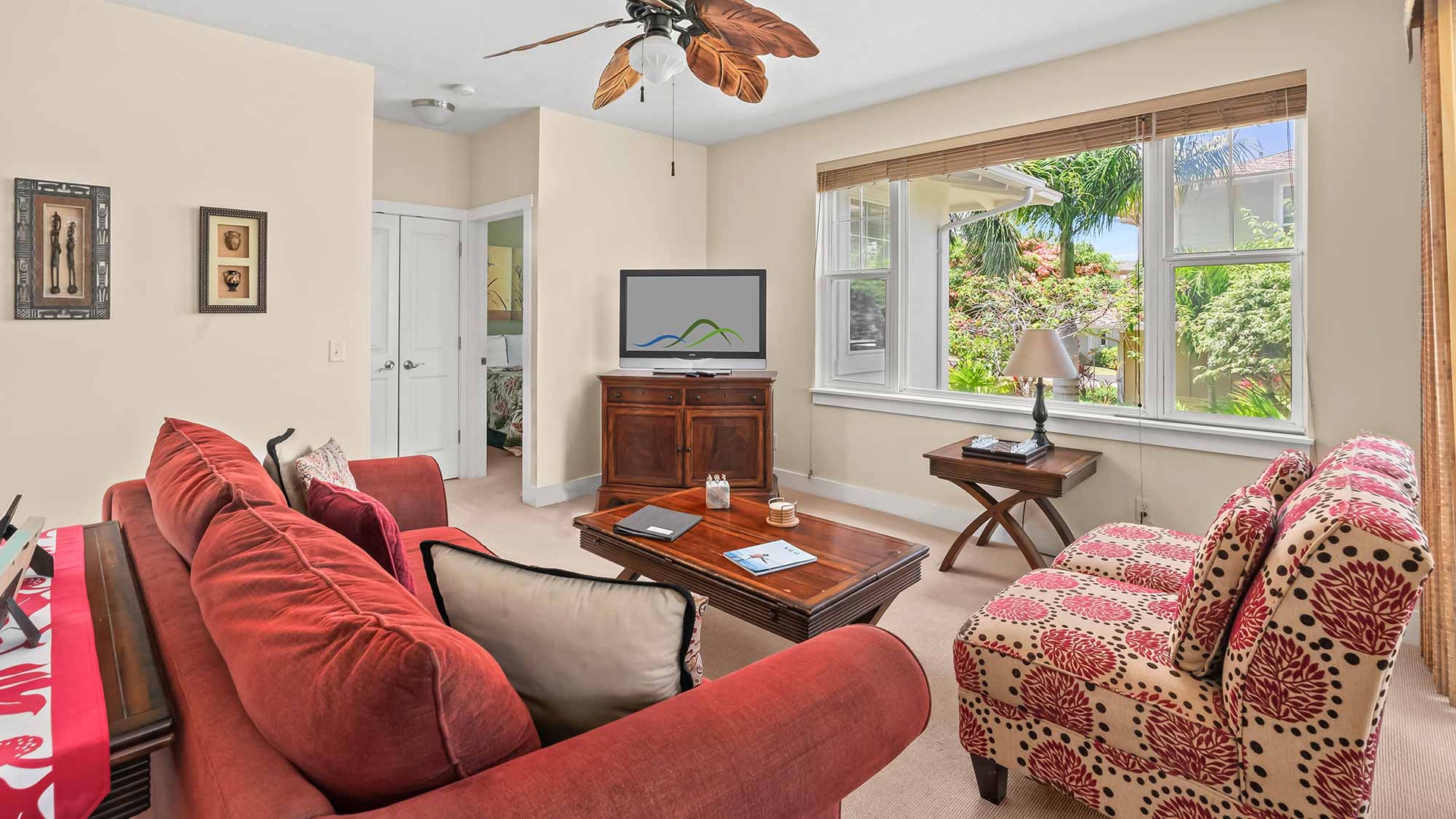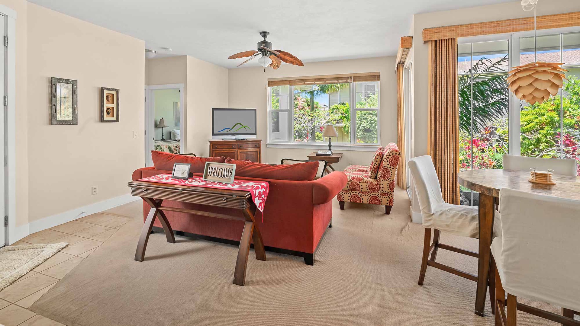 • Flat screen TV in living room, access to private covered lanai