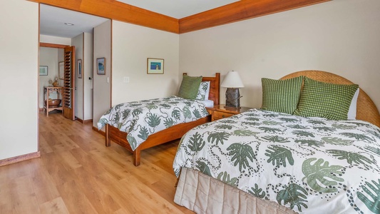 • Second Suite – garden view, AC, one twin bed and 1 full bed, flat screen TV, full bath