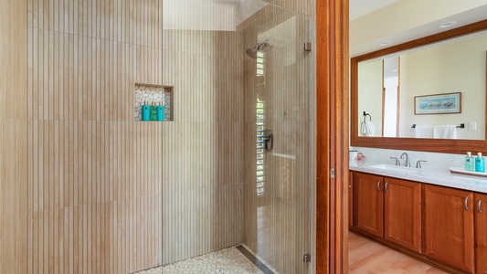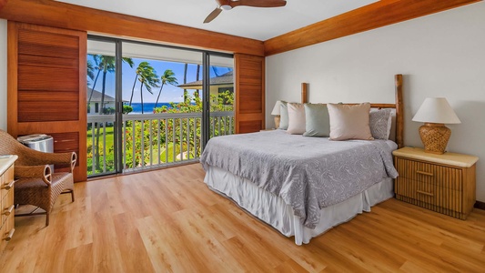 • Master Suite – ocean view, king bed, AC, full bath with walk-in shower