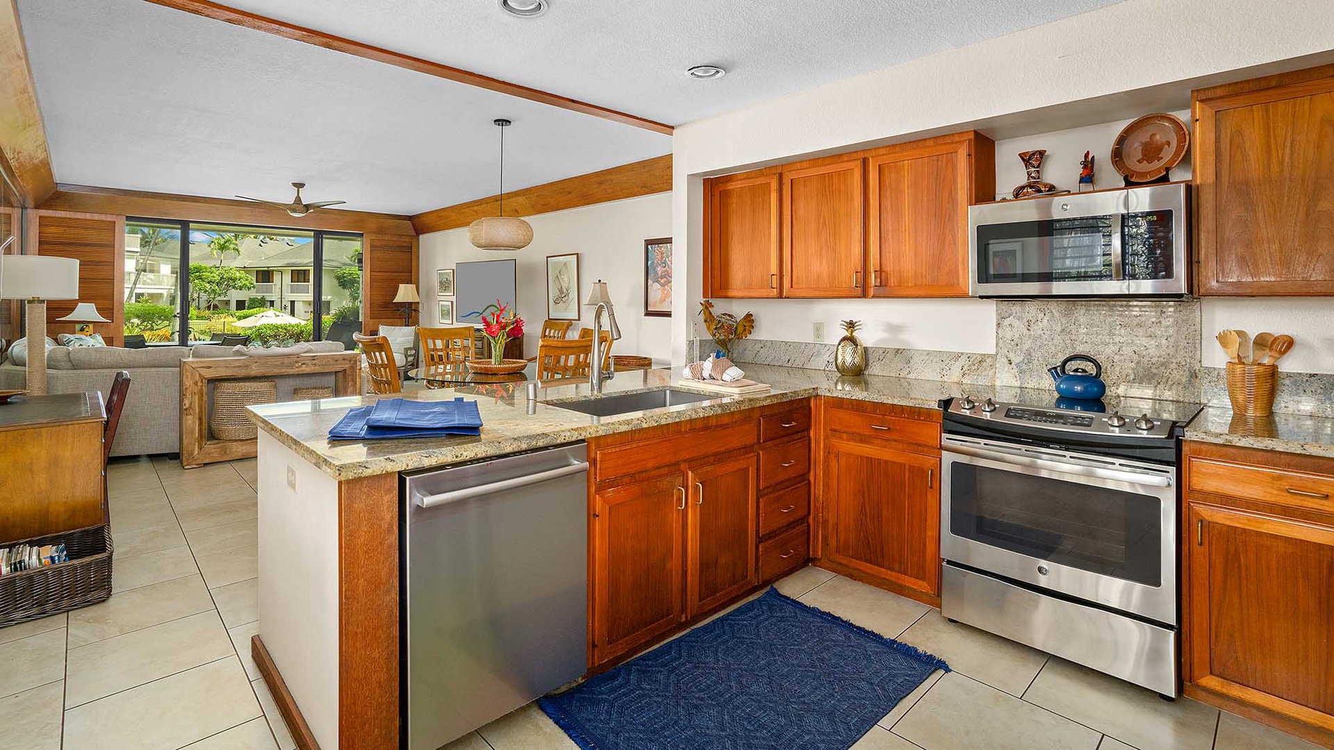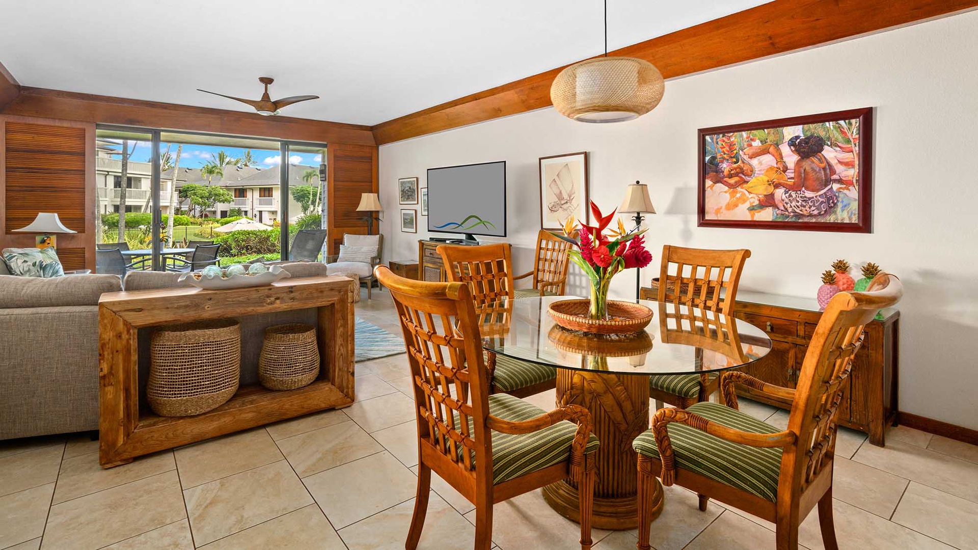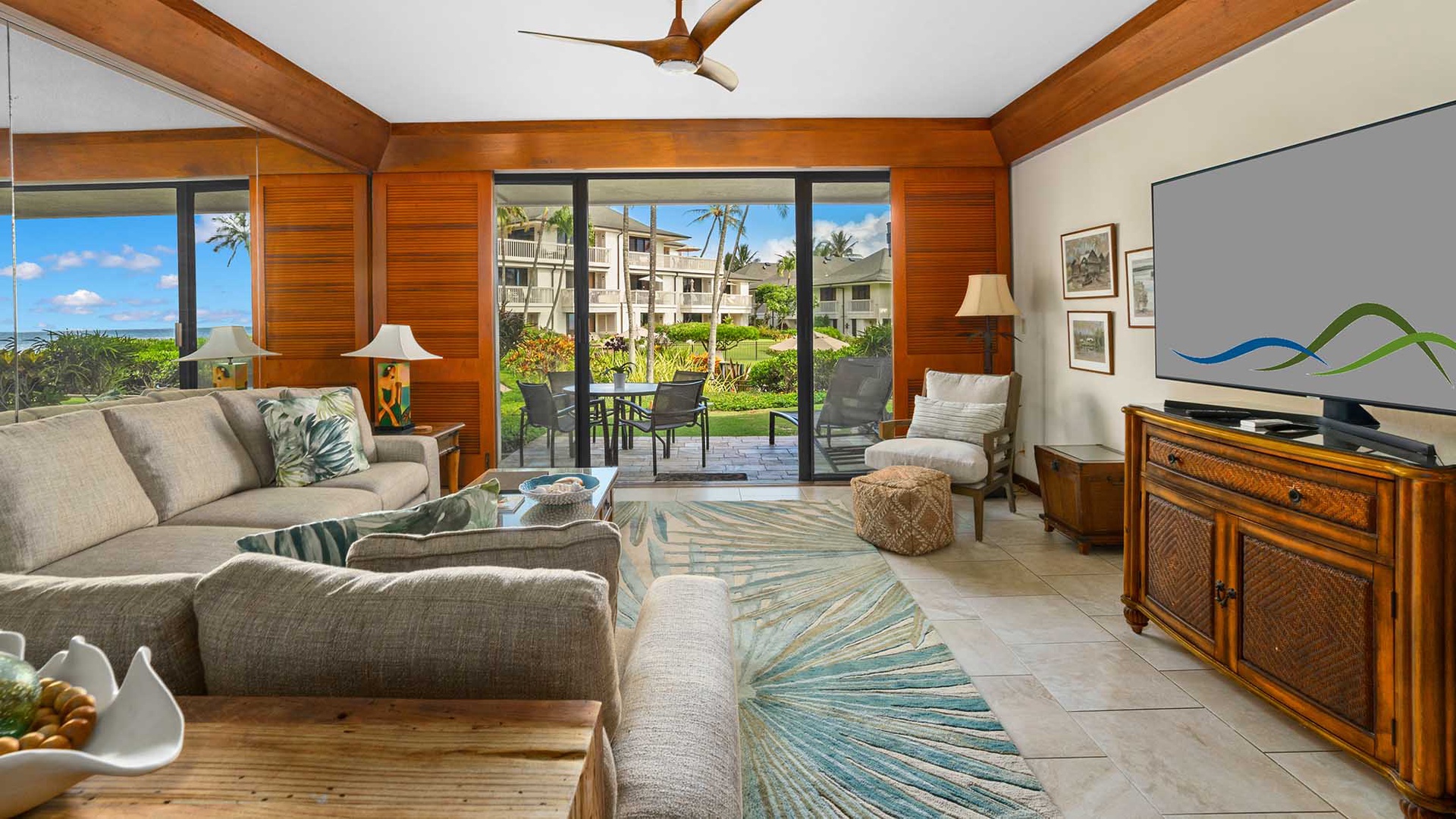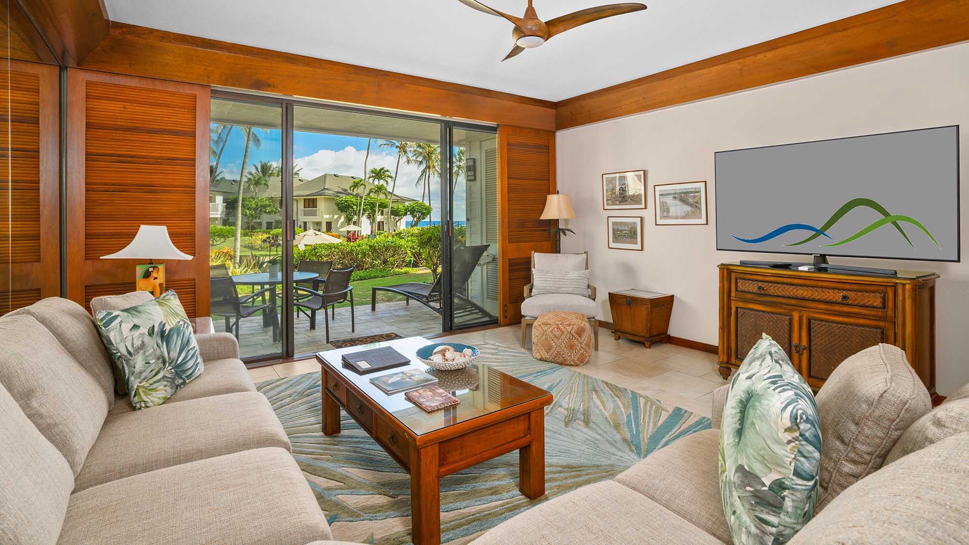 • Great room design – flat screen TV/DVD in living room with access to poolside lanai