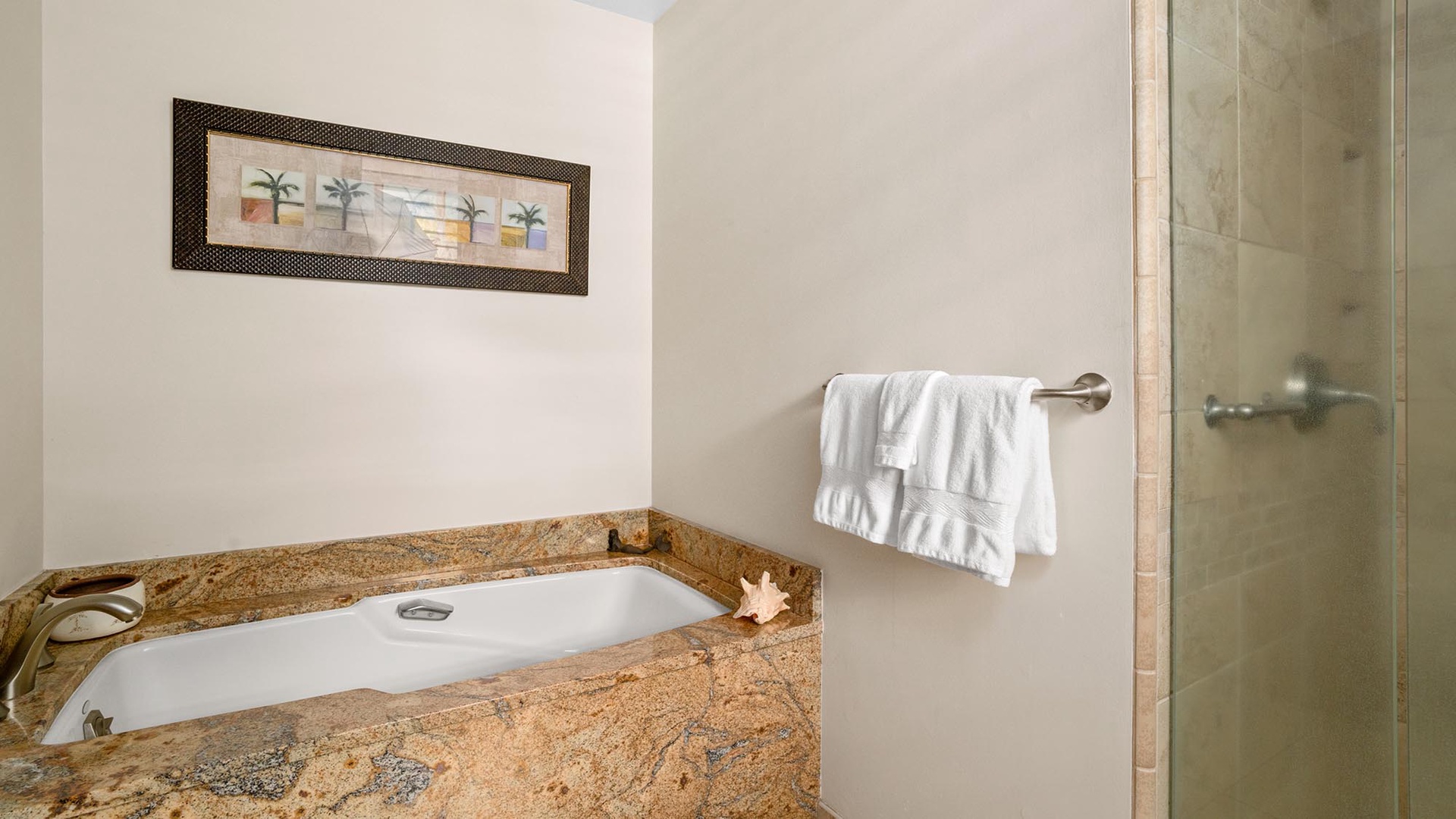 • Master Suite – oceanview, AC, king bed, flat screen TV, full bath with walk-in shower and separate Jacuzzi tub