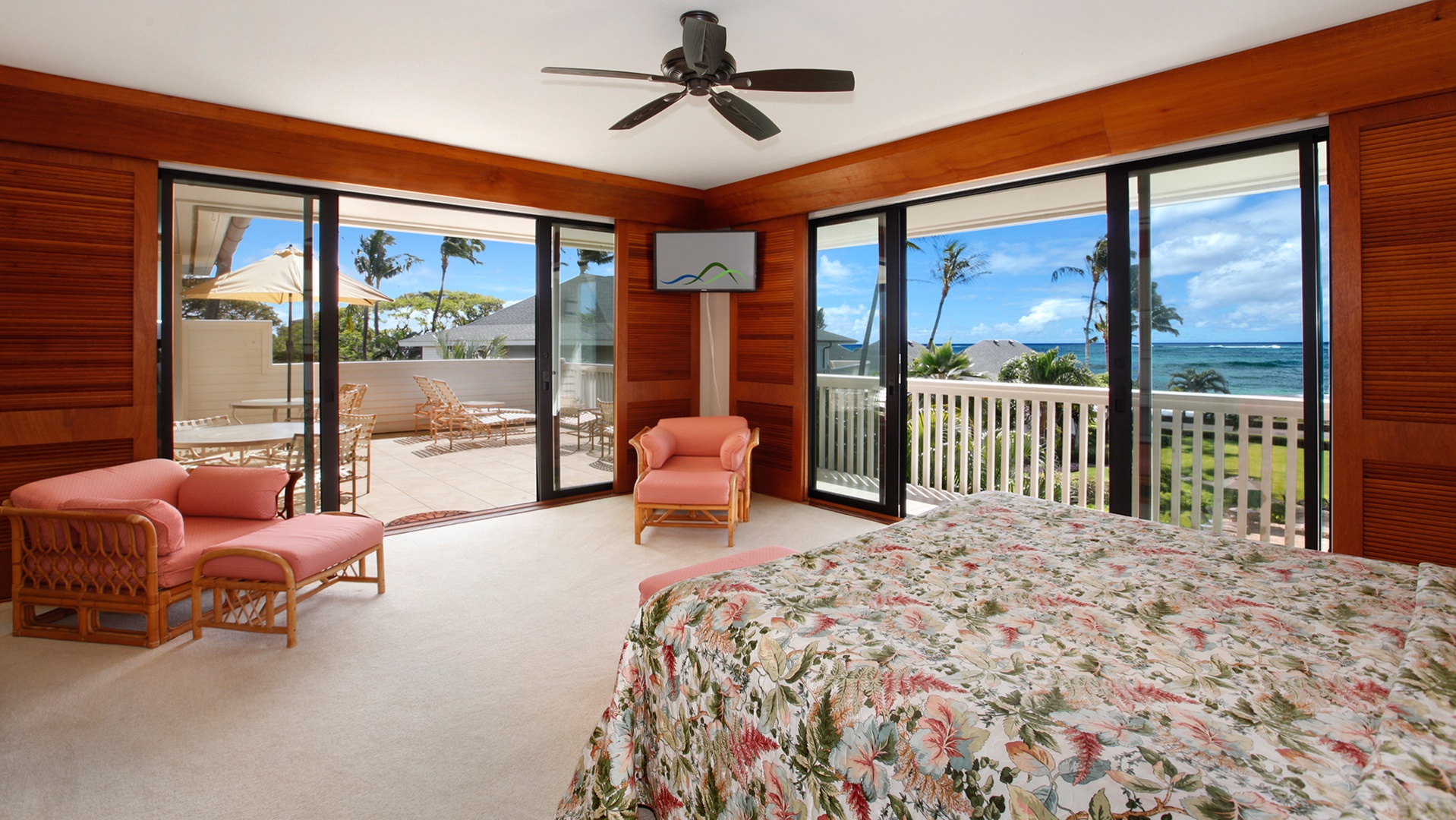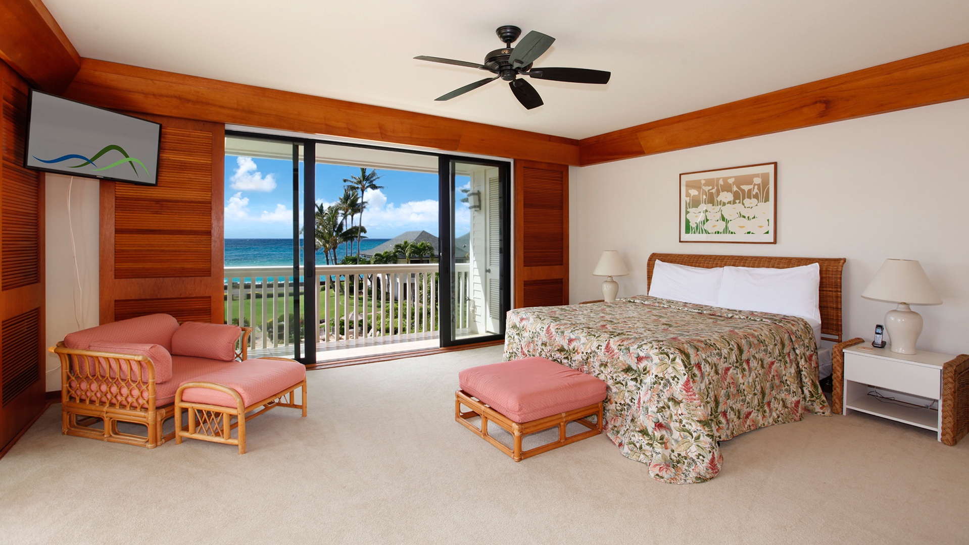 • Master Suite – ocean view, king bed, flat screen TV, full bath, Jacuzzi tub and separate walk-in shower access to lanai