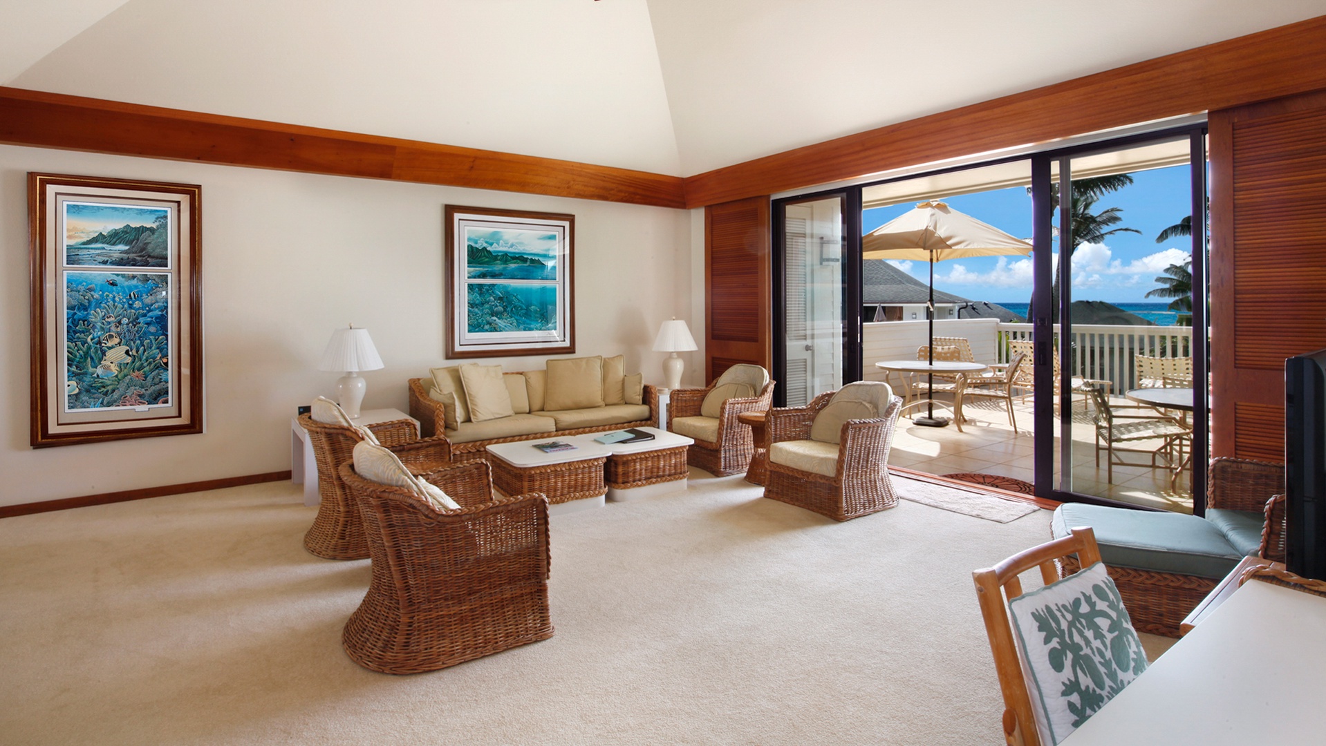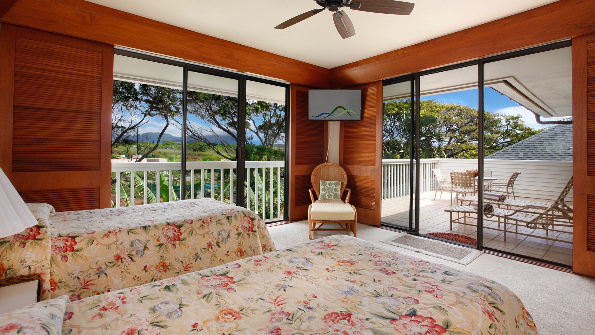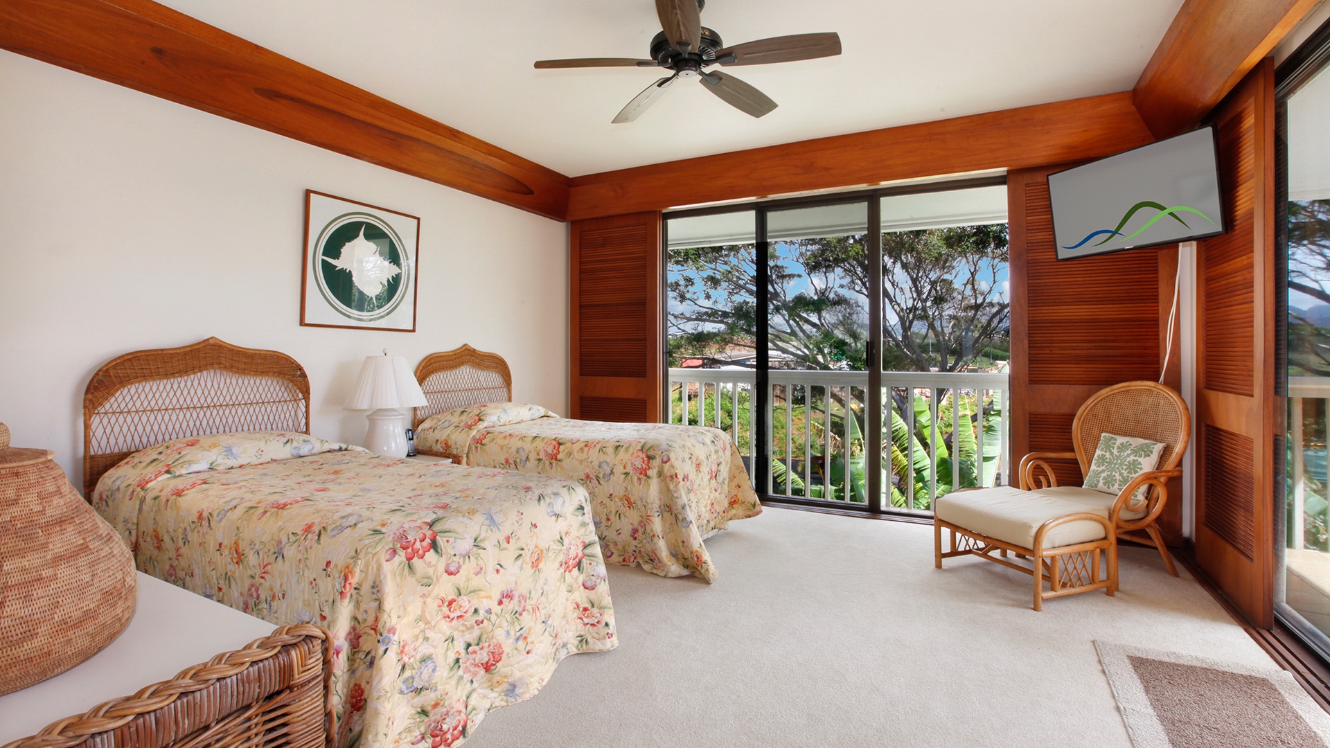 • Second Suite – garden view, two twin beds (convert to king), flat screen TV, full bath, access to lanai