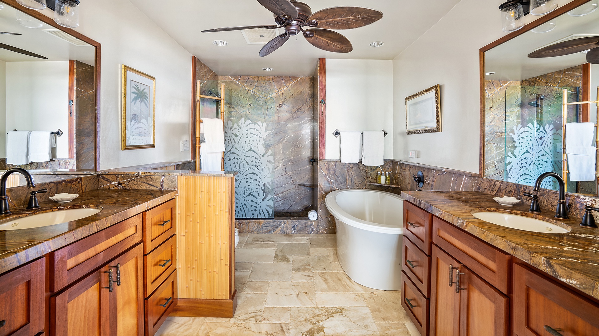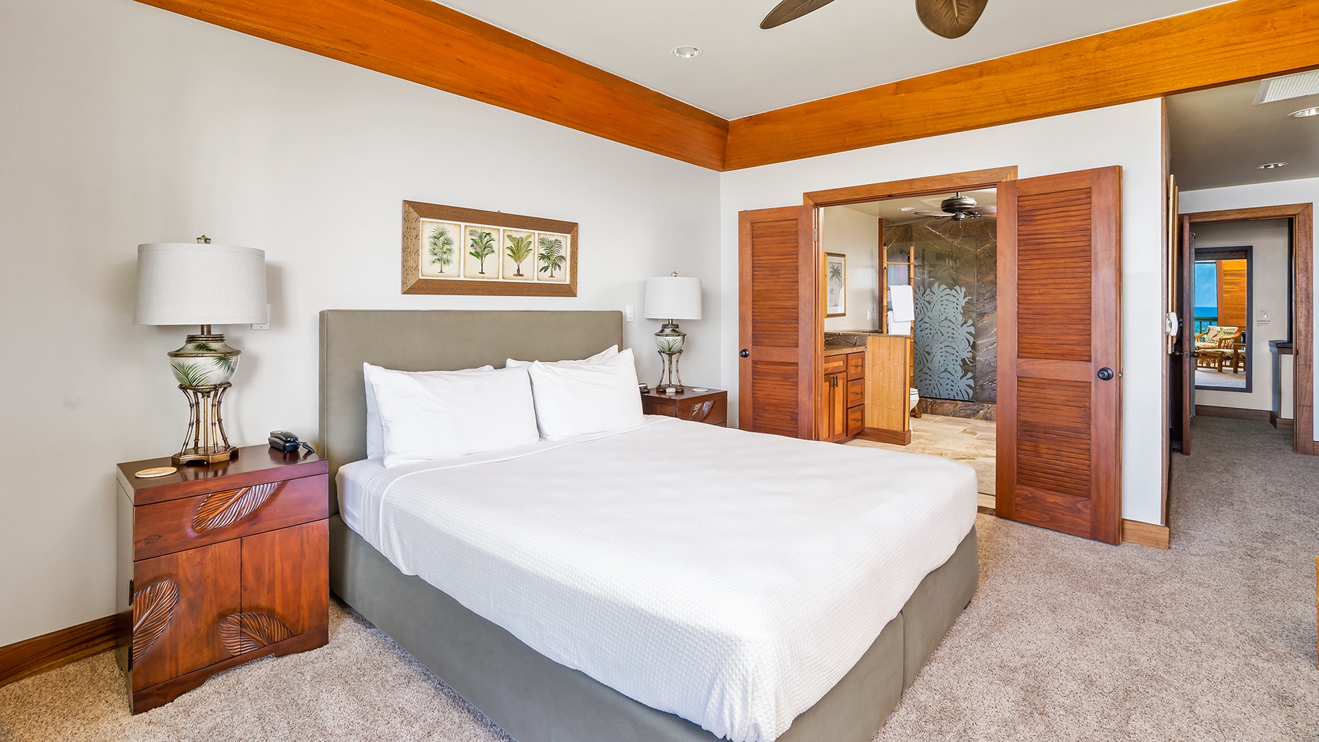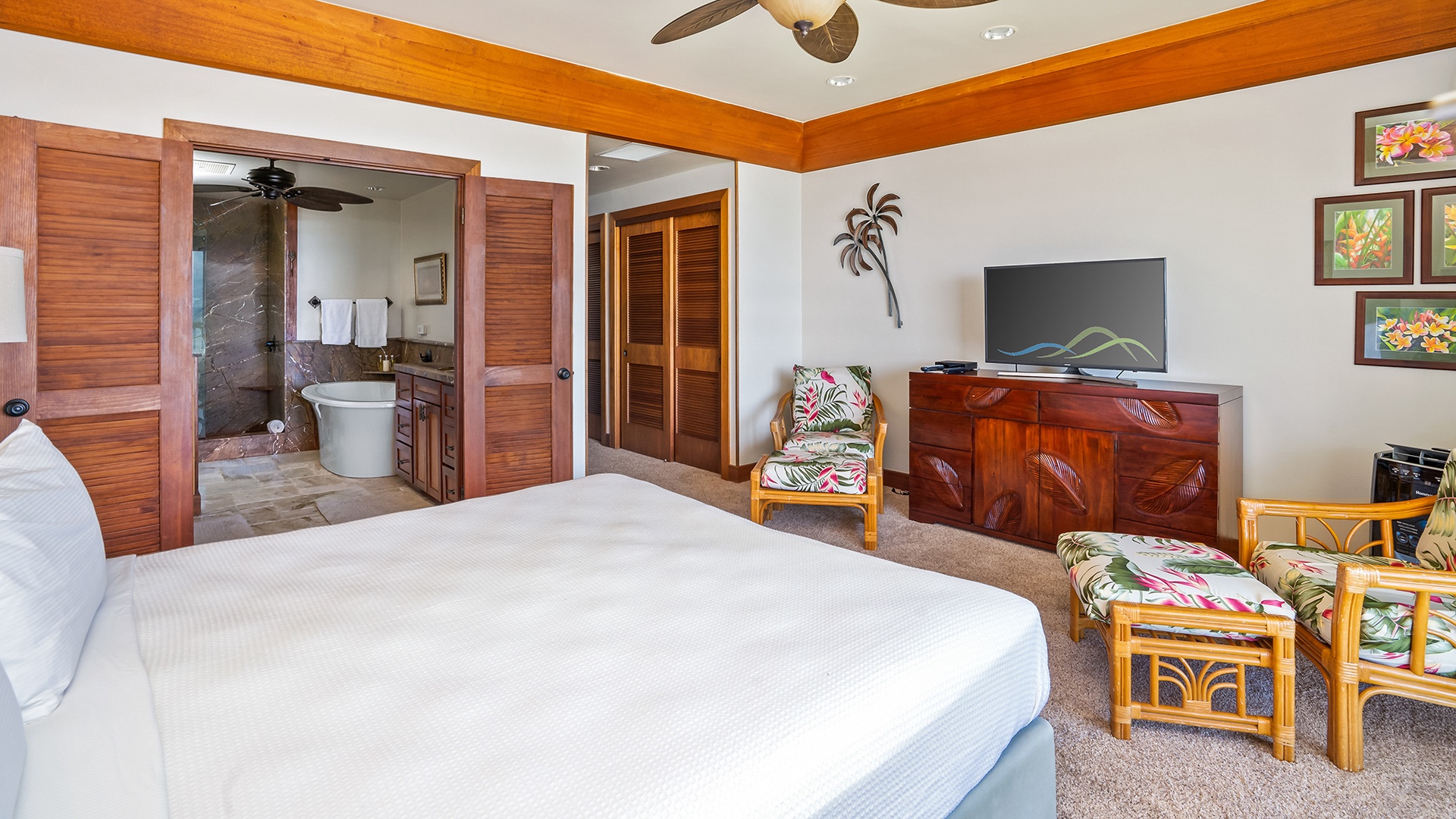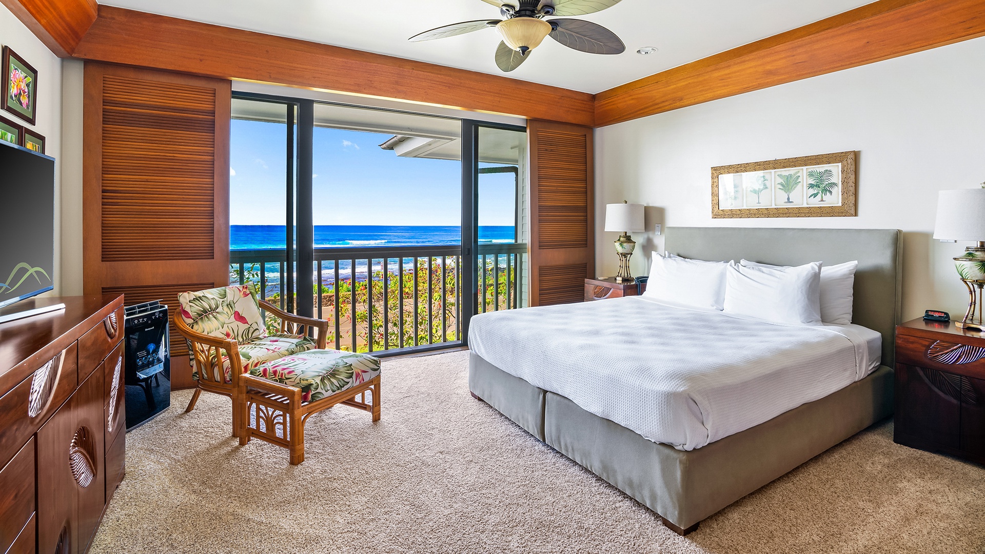 • Master Suite – oceanfront, AC, king bed, flat screen TV, full bath with walk-in shower