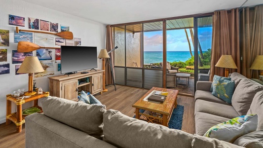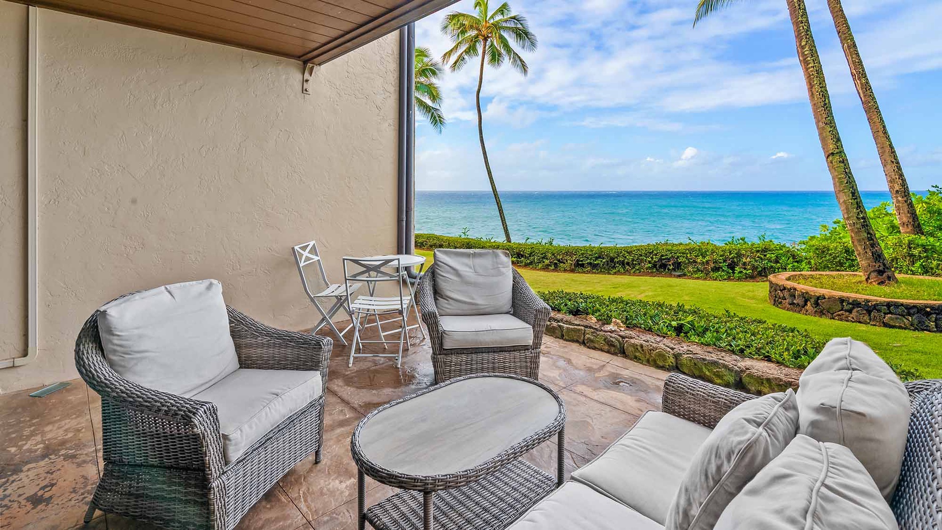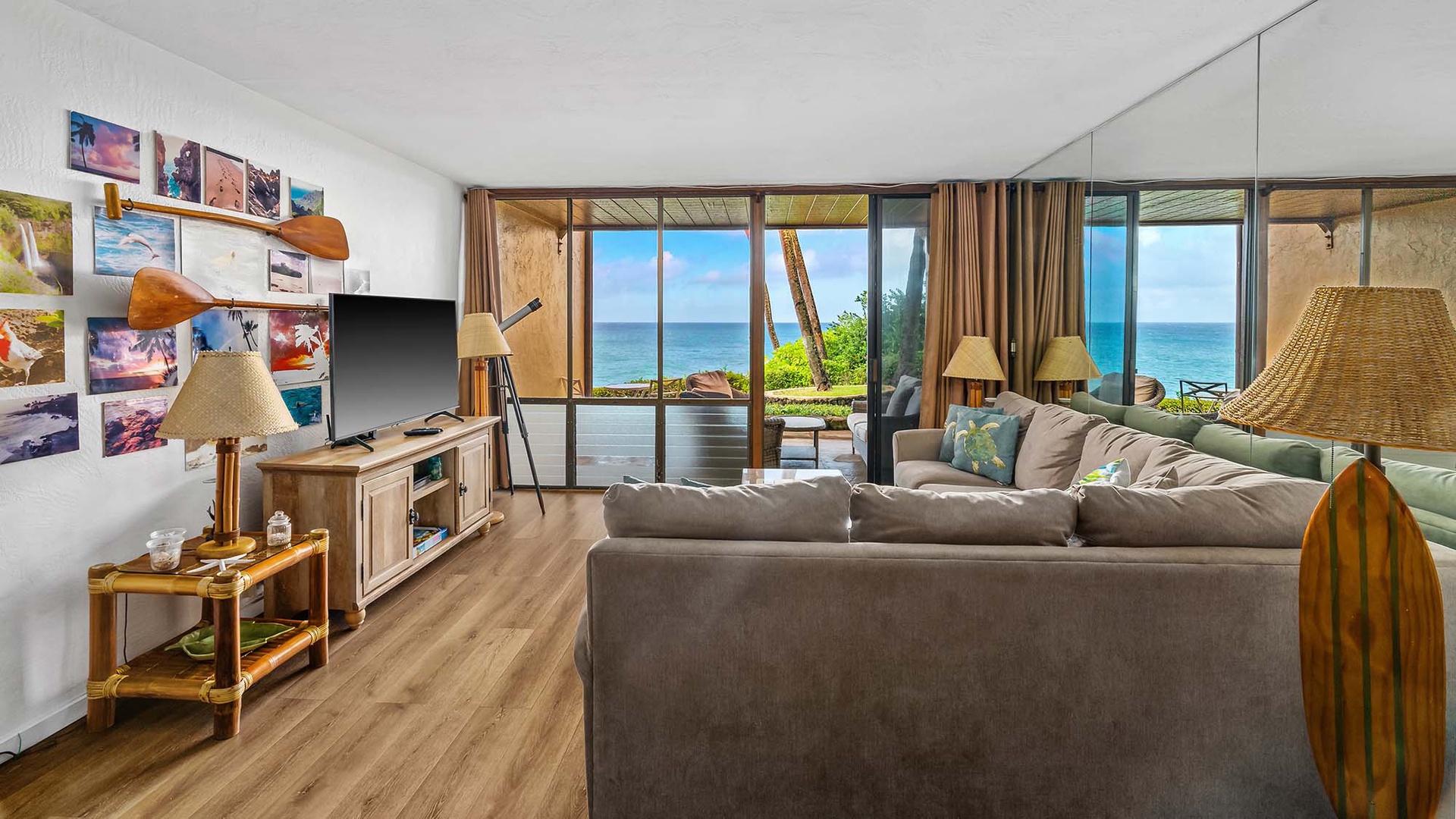 • Flat Screen TV/DVD/CD stereo in living room, AC, oceanfront lanai and lawn